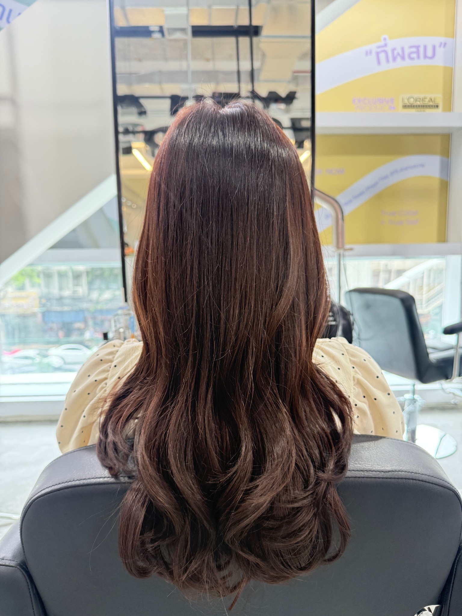 ✨ หลังทำเสร็จ บอกเลยว่า ลุคใหม่คือชอบมาก ผมสีช็อคโกแลตจากผลิตภัณฑ์ L’Oreal คือดูเงา ผมนุ่ม ละมุน