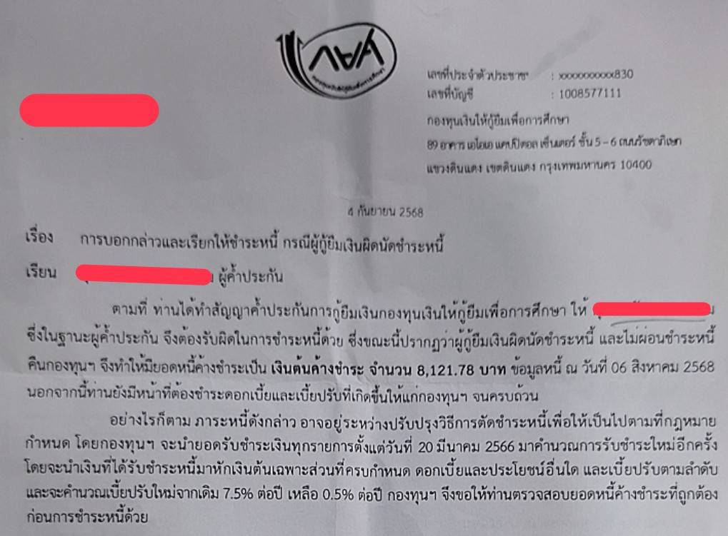 ถูกหัก เงินเดือนทุกเดือน แต่ก็มีจดหมายส่งไปยังผู้ค้ำ