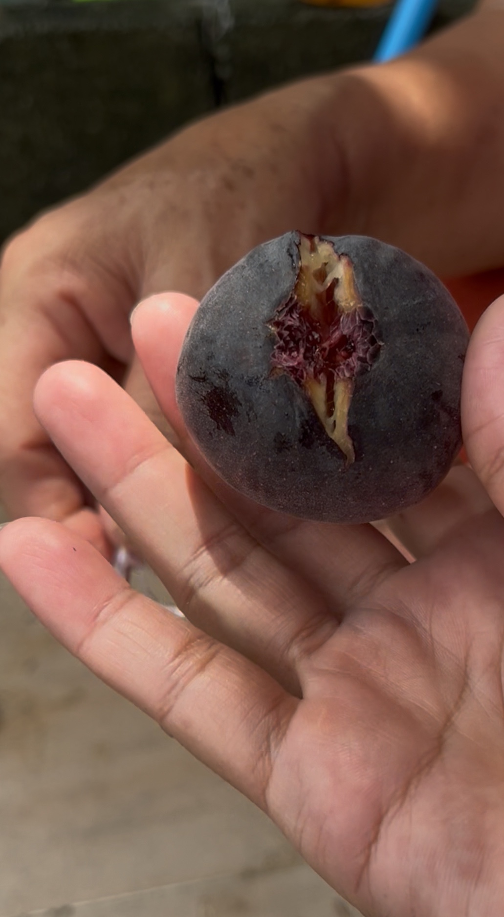 คุโรมิ ติดลูกก่อน สุกช่วงฝนตกเยอะ ลูกเลยแตกก้น แม่มาหาเลยให้แม่ชิมก่อนเลยค่ะ แม่บอกอร่อยมาก🤣