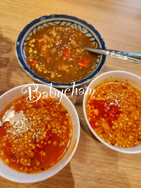 น้ำจิ้ม น้ำราด อะไรๆ ให้มาเต็มโต๊ะไปหมด กินมั่วๆ ก็ไม่เป็นไรค่ะ อร่อยทุกน้ำจิ้ม