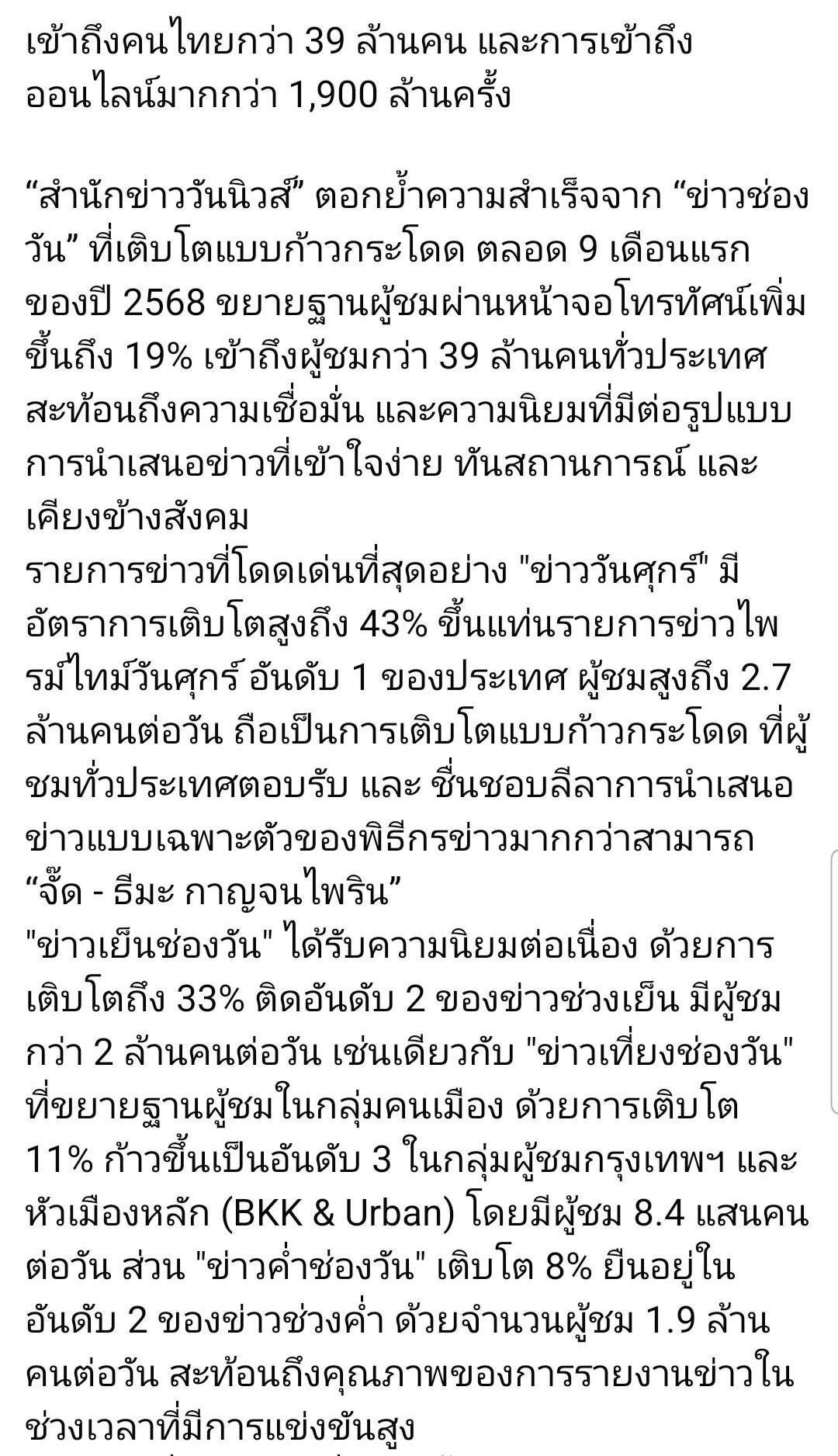 🔎 “ข่าวช่องวัน” แรงไม่หยุด! เรตติ้ง-ยอดผู้ชมพุ่งก้าวกระโดด 9 เดือนแรก 📈