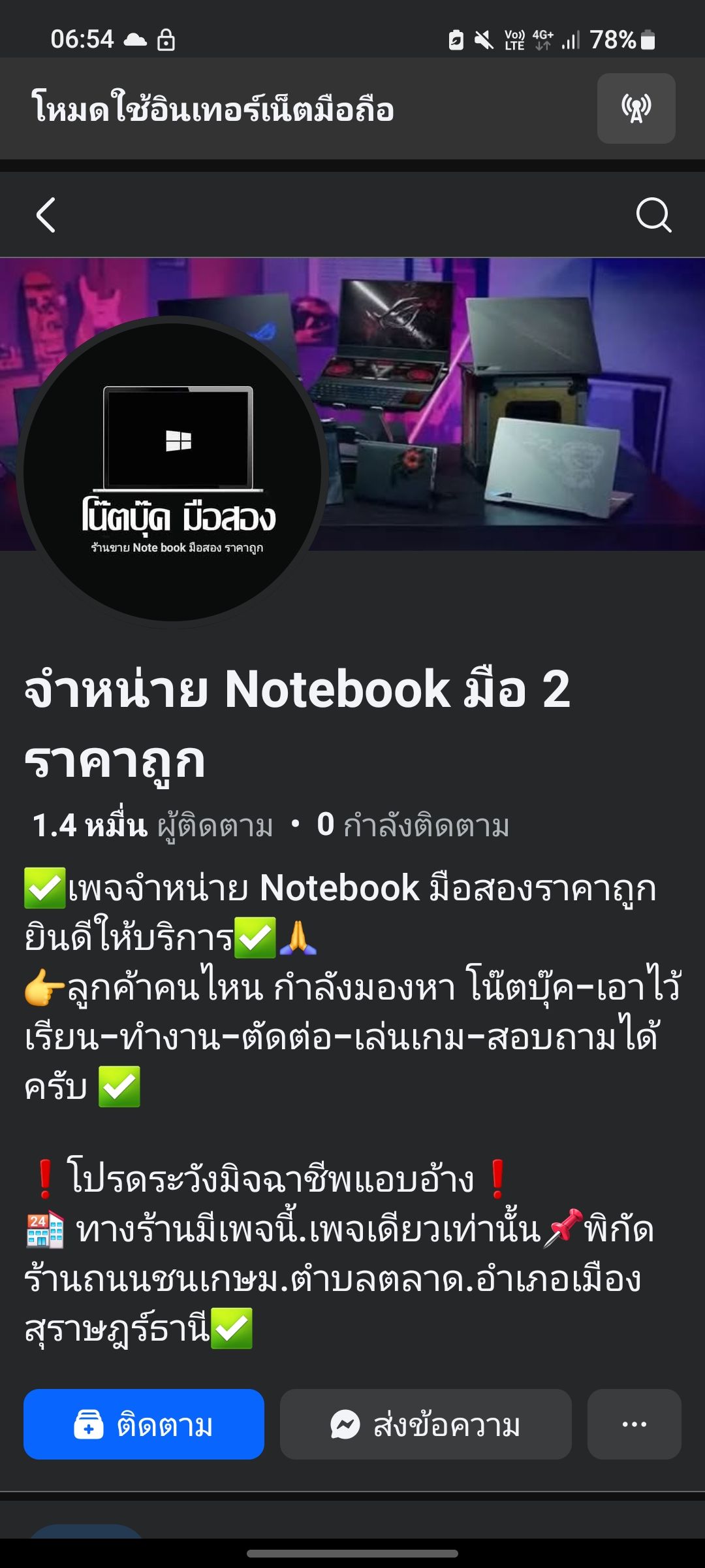 เตือนภัยมิจฉาชีพจากเพจ Notebook มือสองสภาพมือหนึ่ง