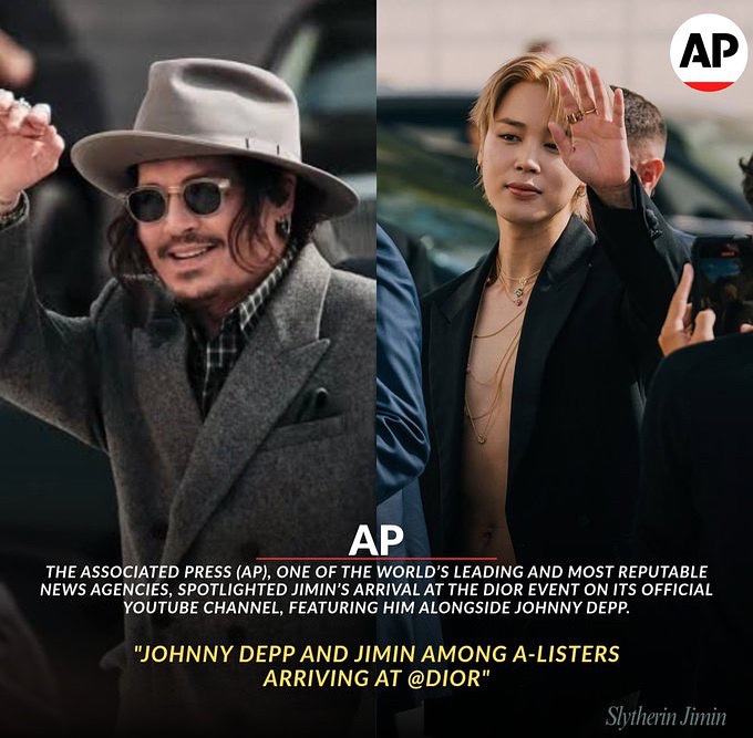 สำนักข่าว AP (Associated Press) ลงคลิป Johnny Depp และ Jimin ท่ามกลางเหล่าคนดังระดับ A-list ในงานแฟชั่น Dior