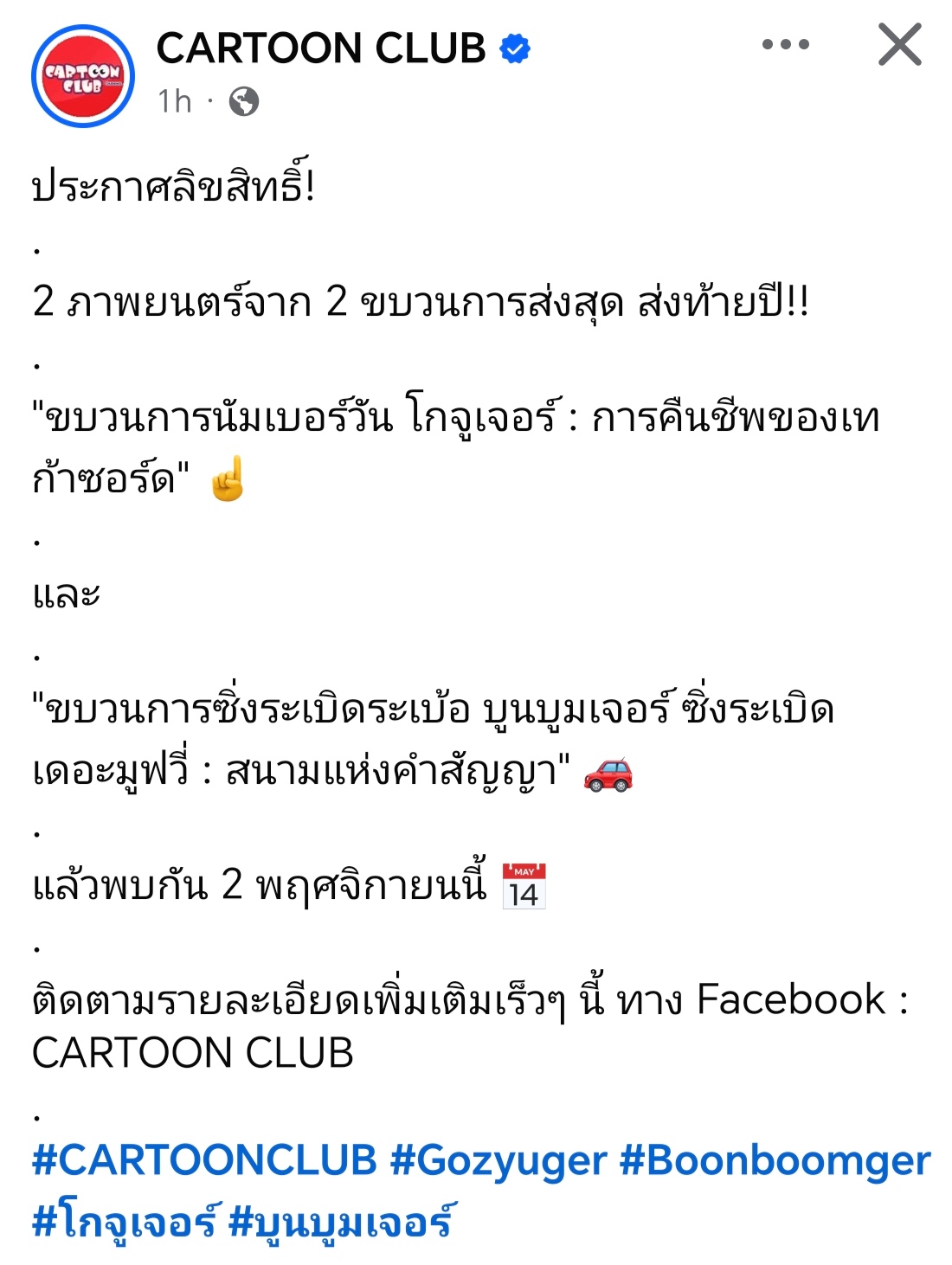 cartoon club ประกาศลิขสิทธิ์มูฟวี่โกจูเจอร์และมูฟวี่บูนบูมเจอร์