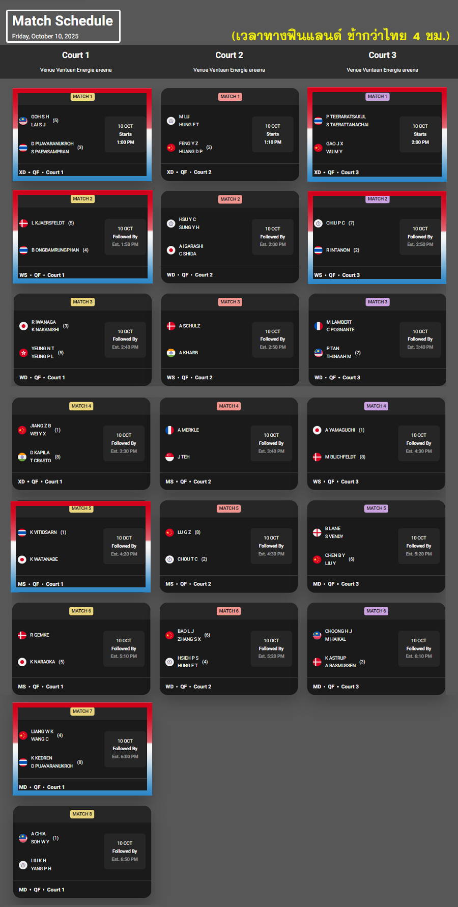 [เว็บจีน] [เลือกวัน 7/10] : https://www.badmintoncn.com/tournament_match.php?tid=1171&date=2025-10-10