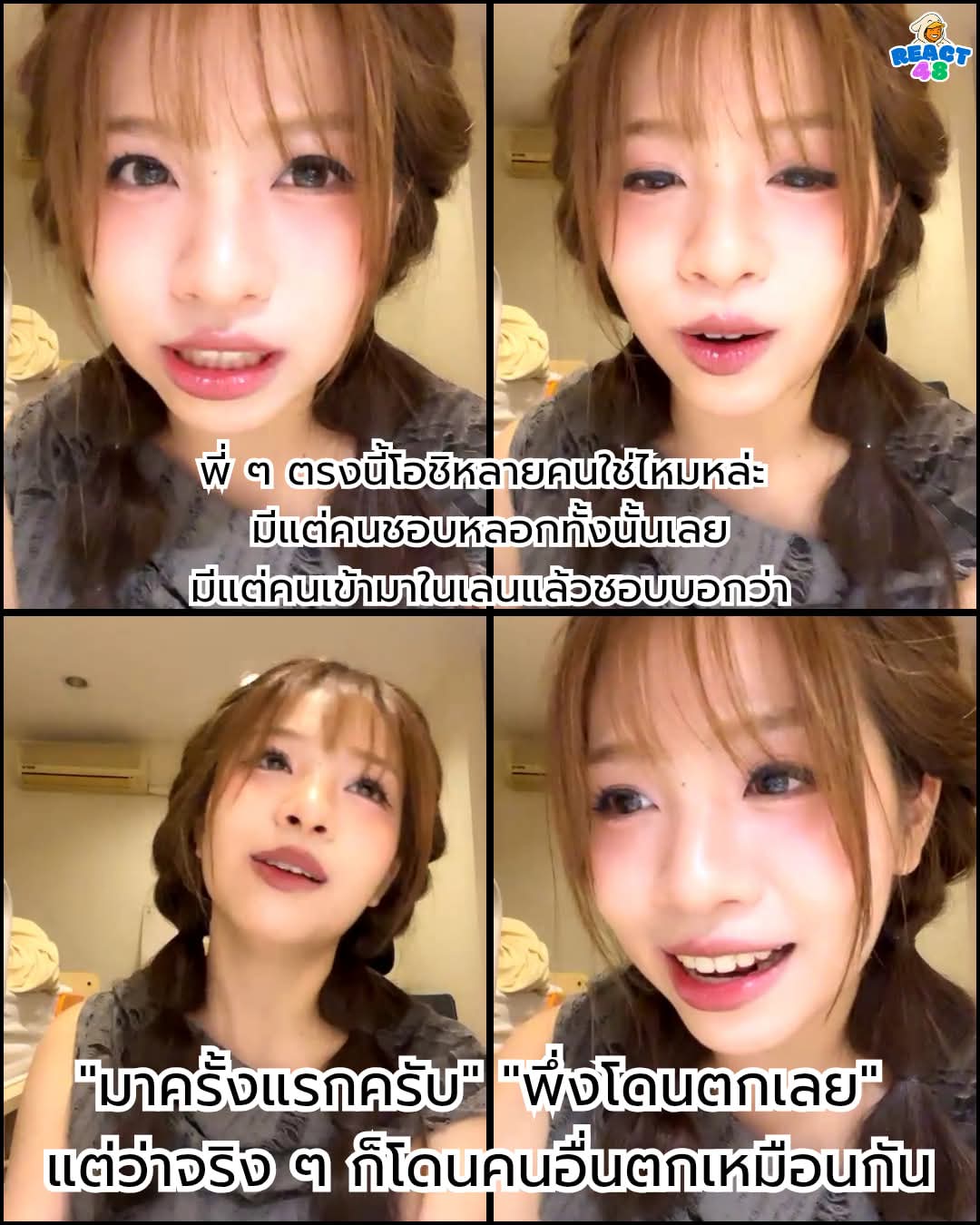 -ทุกคนรู้ไหมในหัวหนูตอนนั้น หนูคิดอย่างนี้ แต่ว่าตอนนั้นหนูเกรงใจนิดหน่อย หนูก็เลยไม่พูดออกไปว่ารู้นะพี่ๆ ตรงนี้โอชิหลายคนใช่ไหมล่ะ มีแต่คนชอบหลอกทั้งนั้นเลย