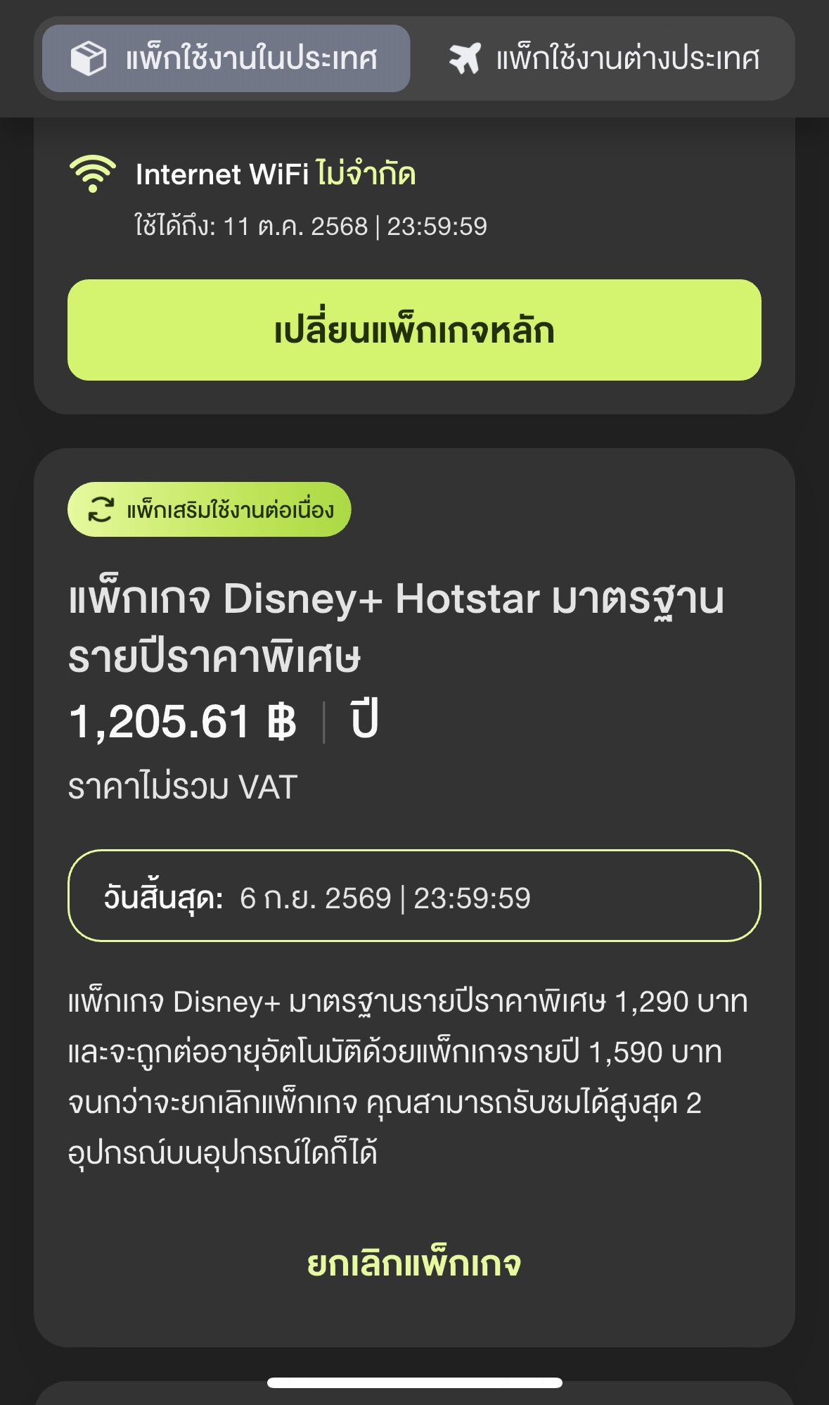Ais ต่ออายุรายปี Disney Hotstar อัตโนมัติ ออกบิลออนไลน์ หักเงินไปแล้ว 6/9/2568 จนถึงตอนนี้ยังเข้าดูไม่ได้