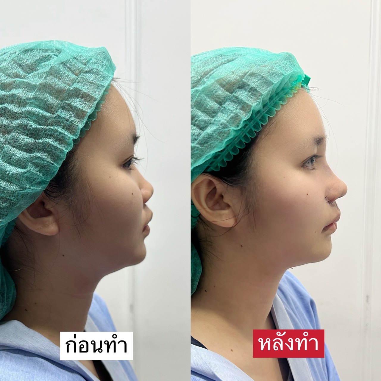 ก่อนทำและหลังทำเสร็จทันที หน้าเปลี่ยนแบบเห็นได้ชัดเจนมากค่ะ เรามีปัญหาคือเป็นคนที่ไม่มีจมูกเลย ปลายจมูกบาน ทำให้หน้าตรงดูไม่มีมิติ ถ่ายรูปไม่ขึ้นกล้อง🥹