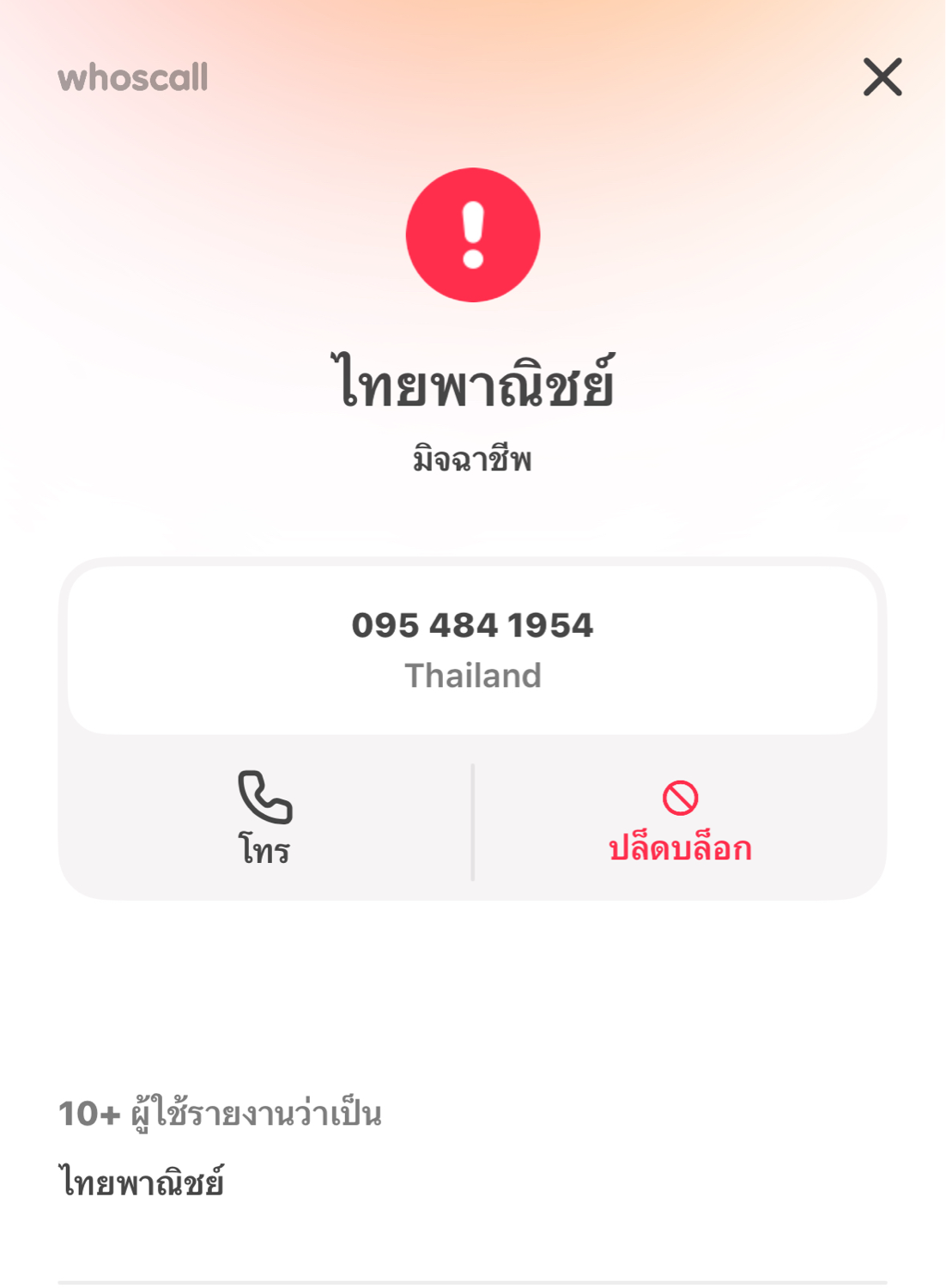 ที่น่ากลัวคือ ในWhocall ขึ้นว่า ไทยพานิช