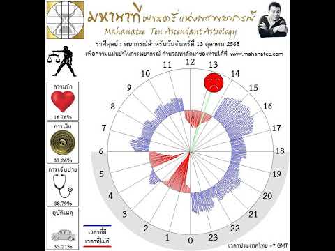 แผนภูมิและพยากรณ์ 12 ราศี สำหรับ วันจันทร์ที่ 13 ตุลาคม 2568