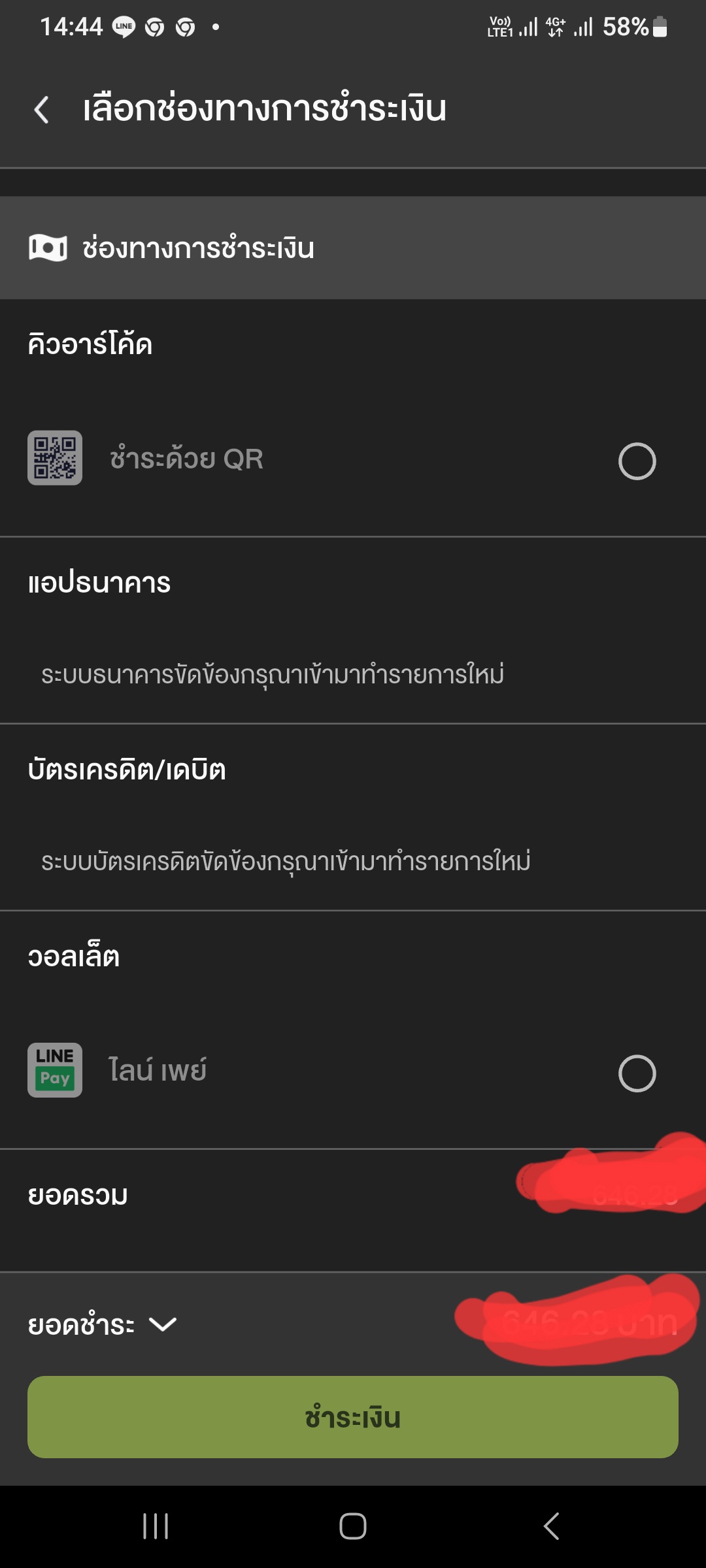 ไม่มีช่องทางให้กดเลือกจ่ายได้เลย จะกดโหลดคิวอาร์ก็กดไม่ได้ สรุปต้องไปจ่ายที่หน้าเค้าเตอร์อย่างเดียวหรอครับ