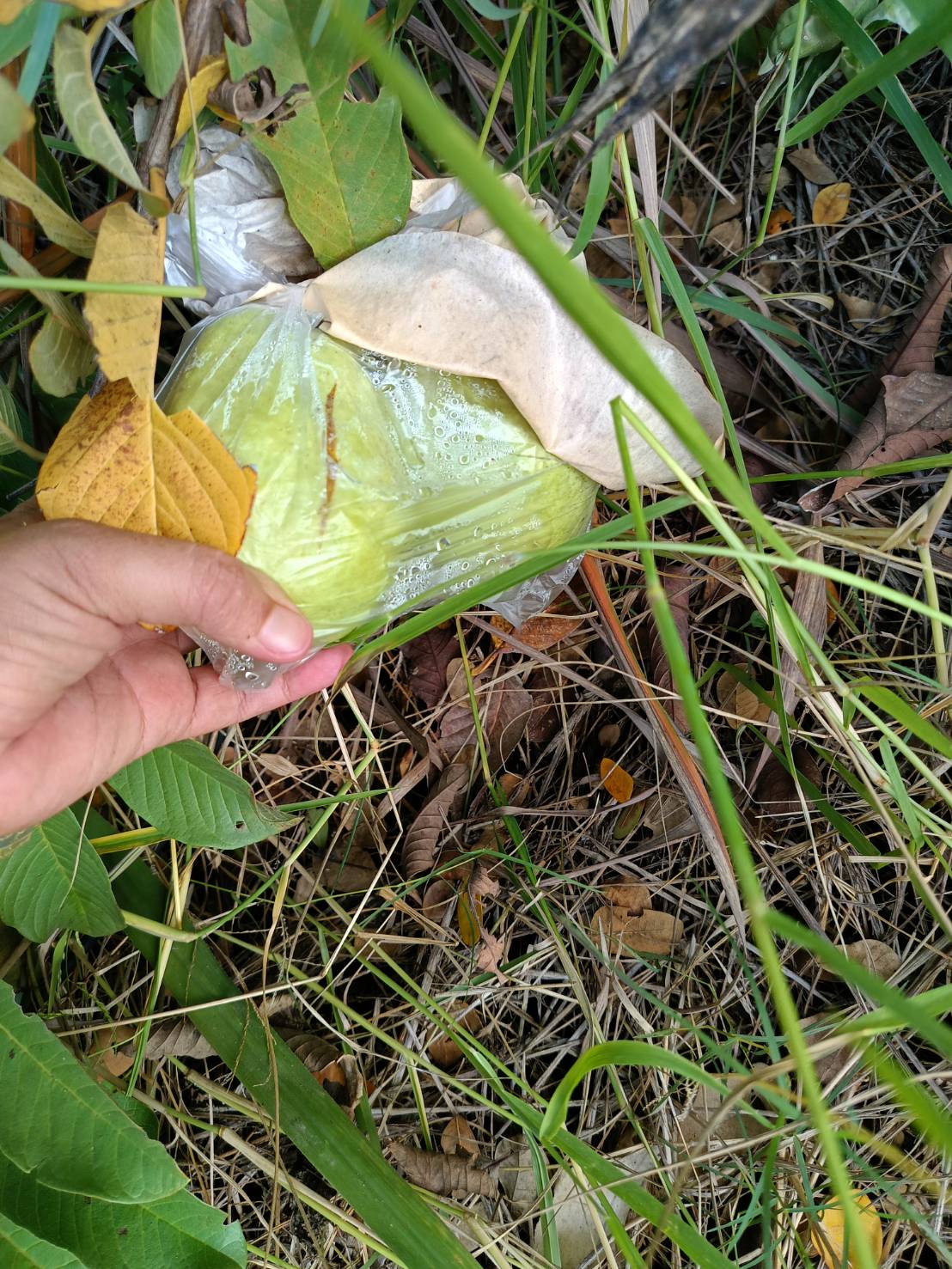 ล่าสุดไปทยอยห่อผล ห่อผิดๆ ถูกๆ มั่วๆไป ช่วงที่มันยังเล็กๆ อยู่ อีก2 เดือนผ่านไป ได้เก็บกินแล้ว