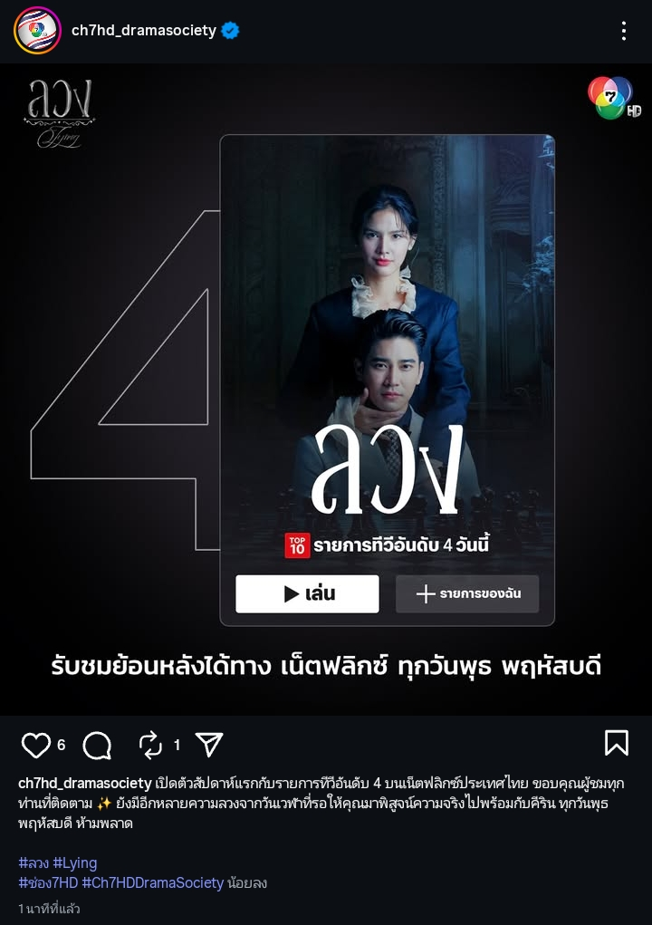 ละคร ลวง จากช่อง 7 เปิดตัววีคแรกใน NETFLIX พร้อมติด TOP10 !!!!