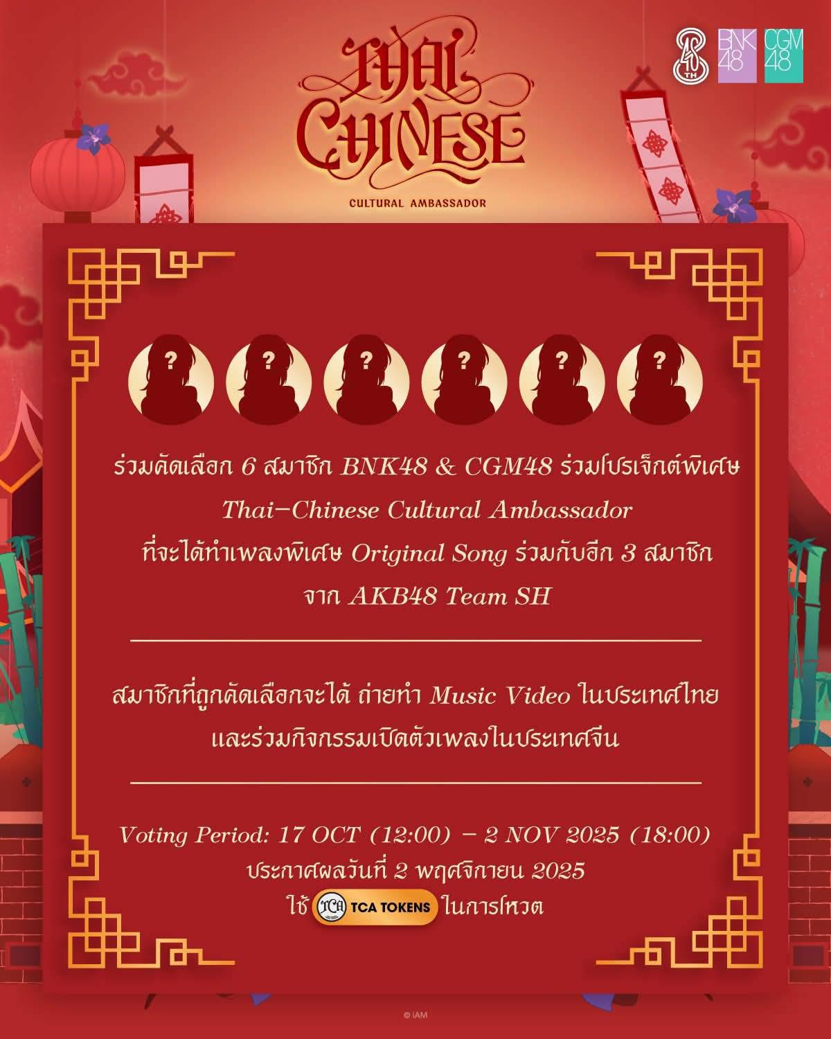 ร่วมคัดเลือก 6 สมาชิก BNK48 & CGM48 ร่วมโปรเจ็กต์พิเศษ Thai-Chinese Cultural Ambassador ที่จะได้ทำเพลงพิเศษ Original Song ร่วมกับอีก 3 สมาชิก จาก AKB48 Team SH