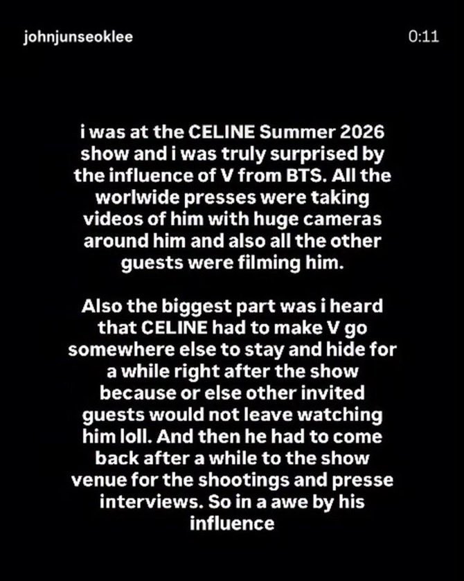 อิทธิพลของ V BTS ในงานแฟชั่นโชว์ของ CELINE ถูกเล่าโดยคอนเท้นต์ครีเอเตอร์ที่ได้รับเชิญเข้างาน