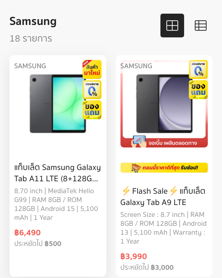 Tablet Samsung Tab A11 LTE กับ Tab A9 LTE จอ 8.7“ เหมือนกัน ตัวไหนดีครับ