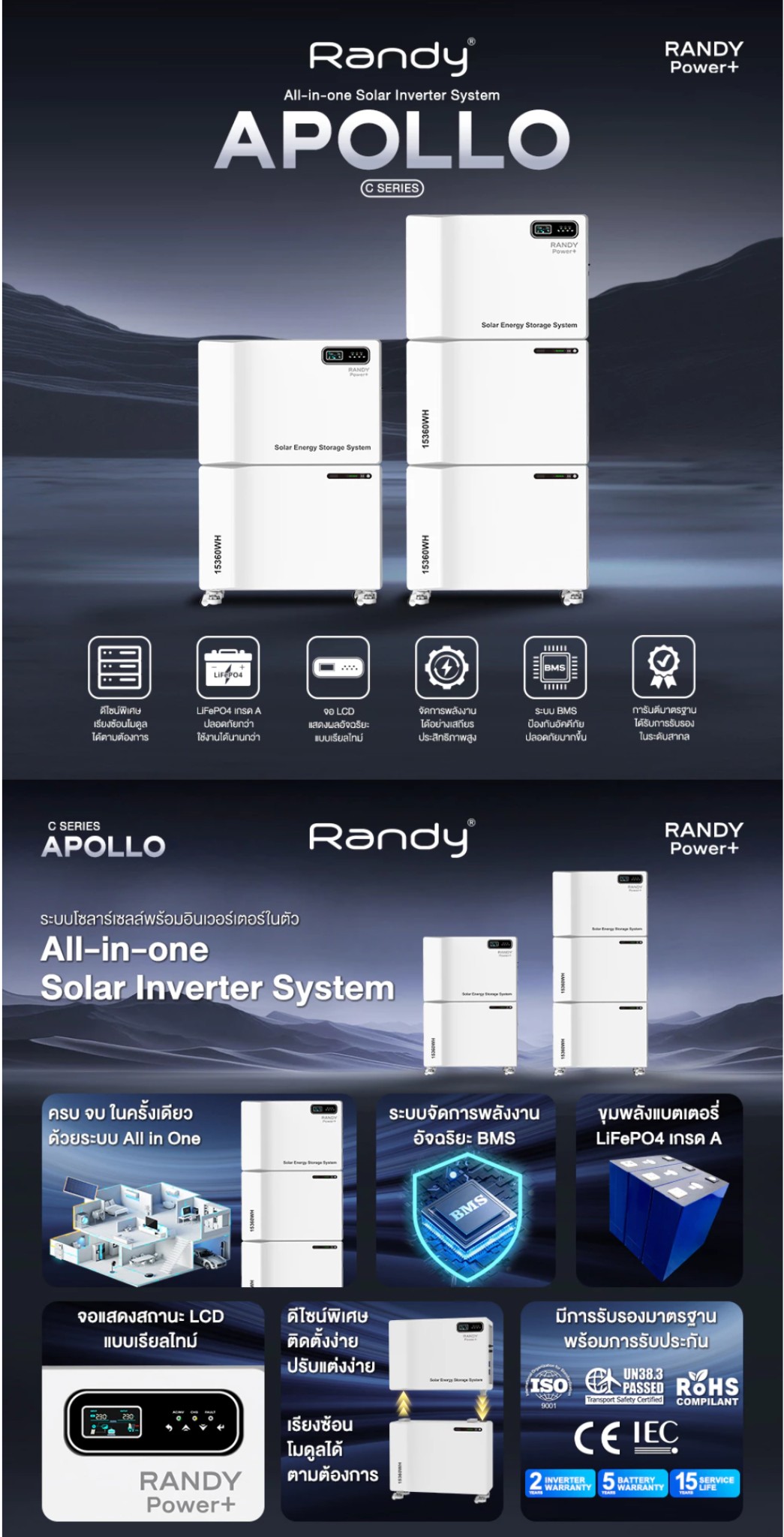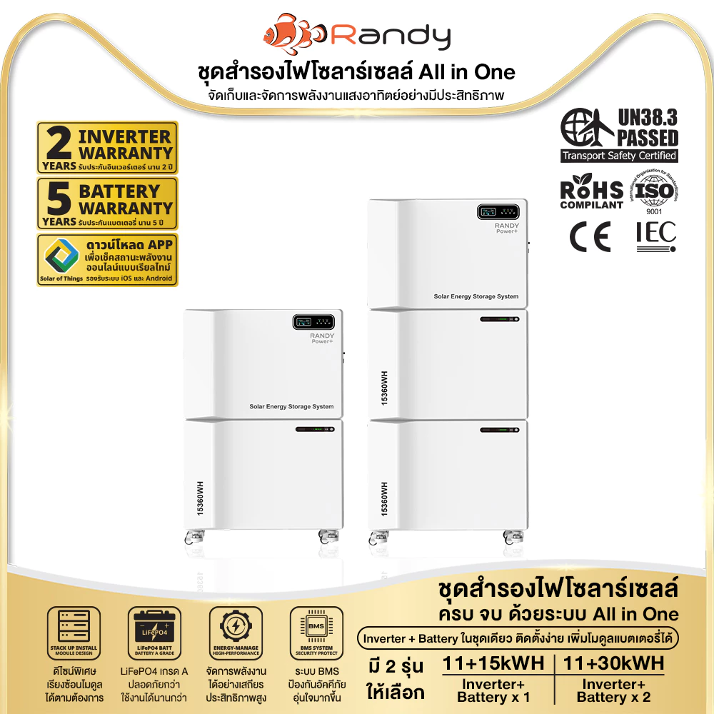 [แนะนำ]ชุดโซล่าเซลล์ แบบ inverter มีแบตเตอรี่ในตัว 2 IN 1 แค่ติดตั้งแผง เสียบสายเข้าเครื่องก็ใช้งานได้เลย RANDY Power+