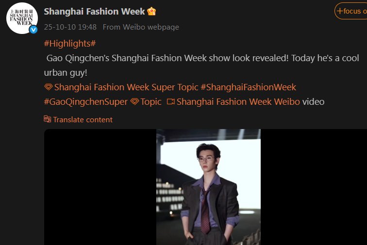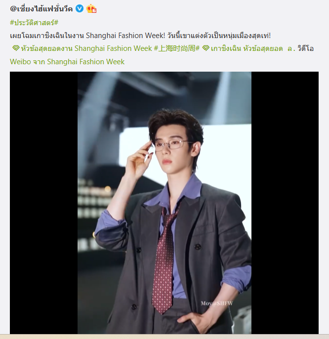 แอคเคานต์งาน Shanghai Fashion Week มาลงคลิปน้องนายค่ะ ทั้งใน weibo xhs tiktok เลย