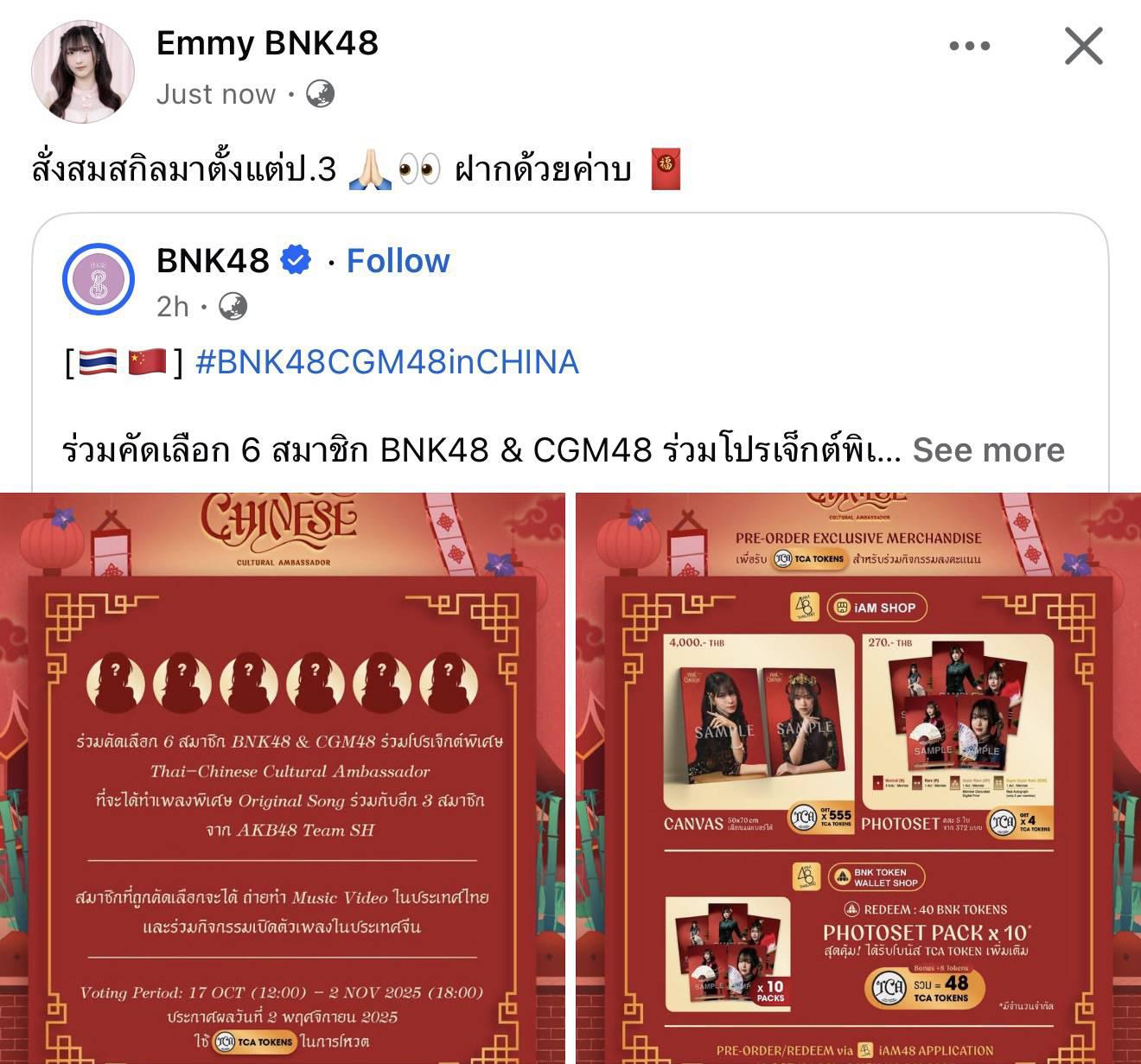 BNK48 6th Generation Debut Stage วันเสาร์ที่ 11 ตุลาคม 2568ณ ศูนย์การค้าเอ็ม บี เค เซ็นเตอร์ เริ่มแสดงเวลาประมาณ 12.00 น. ถ่ายทอดสดผ่านทาง YouTube ช่อง BNK48(https://www.youtube.com/watch?v=cLuSRgLITk