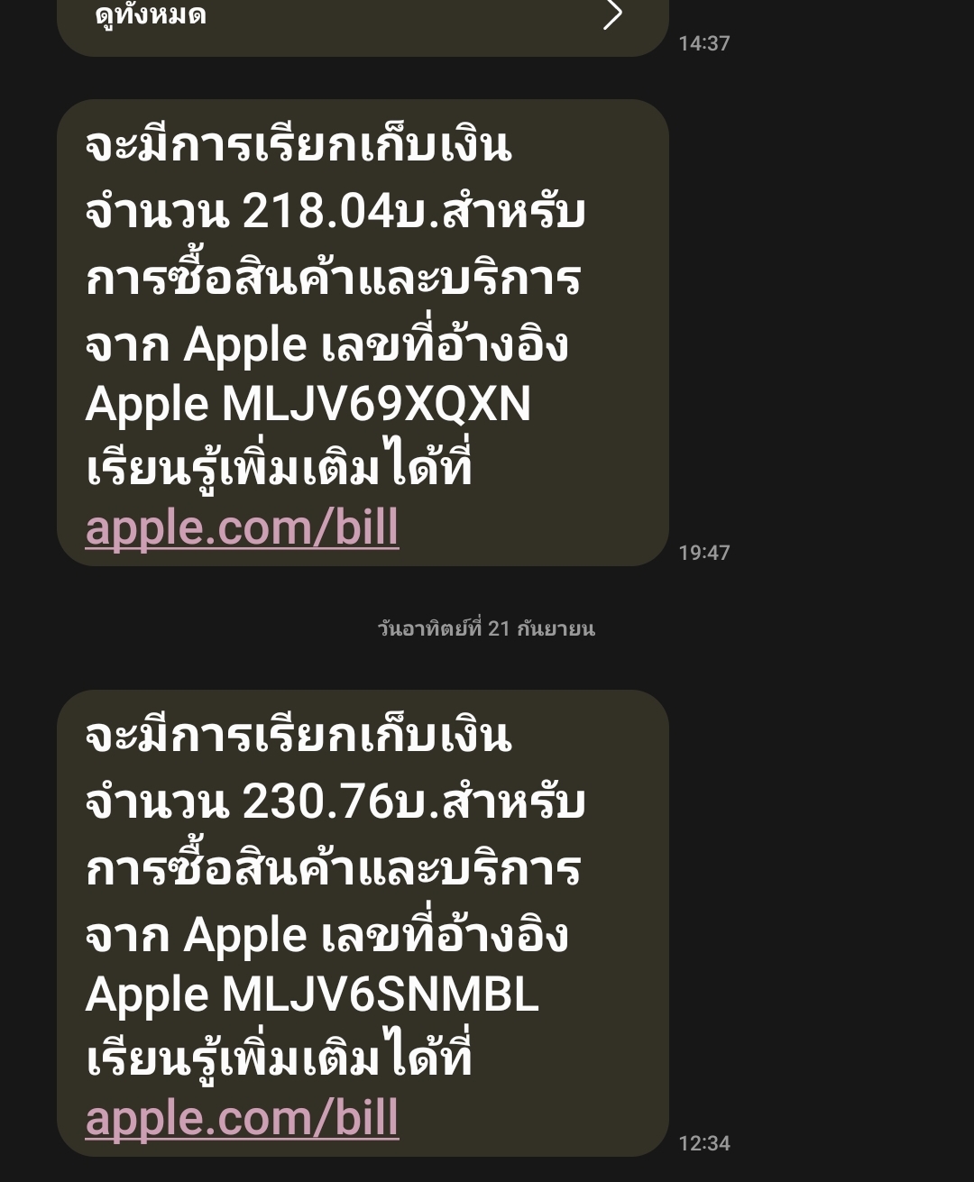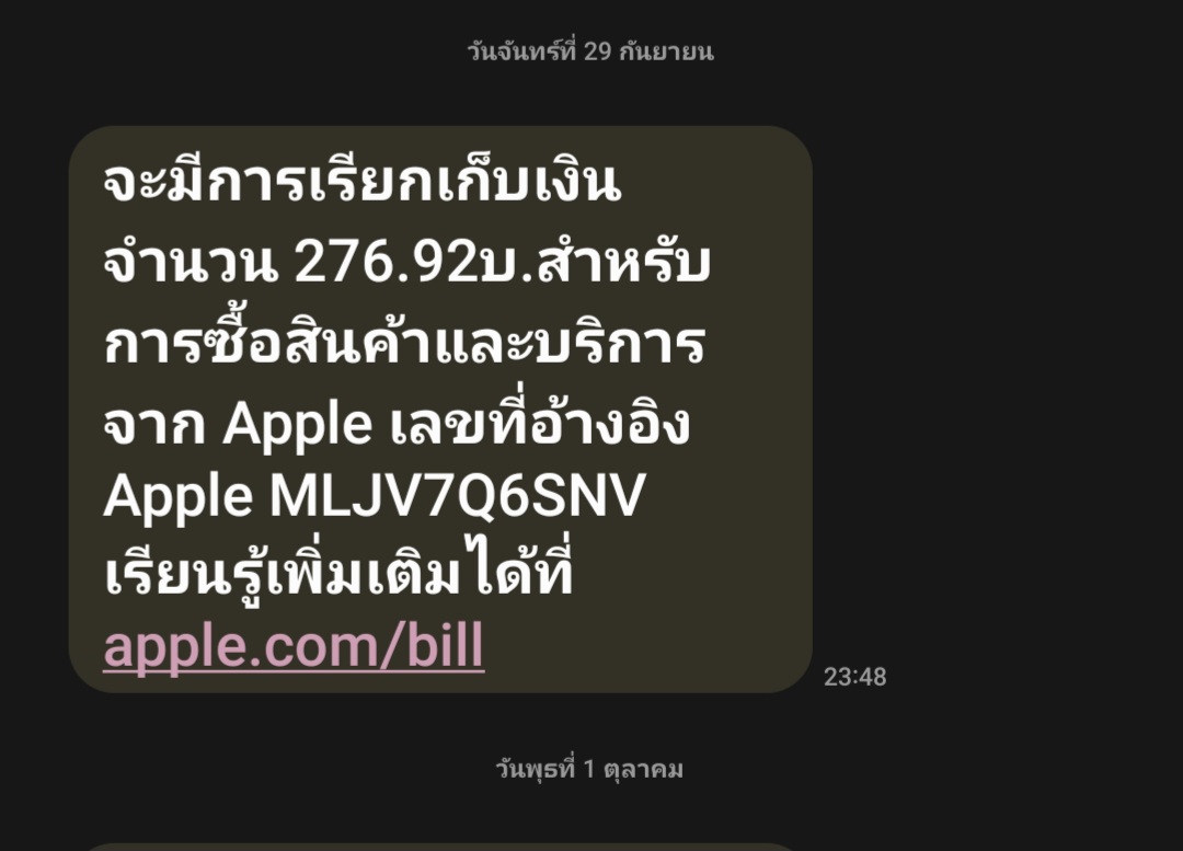 มีบิลเรียกเก็บเงินจากApple โดยที่ไม่คยใช้IOSเลย OTPก็ไม่ส่งมา โทรหาทรูให้ติดต่อApple ใครเคยเจอบ้า