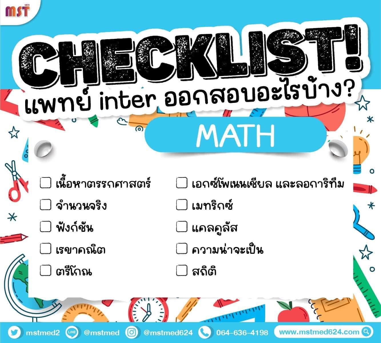 เช็คลิสแพทย์ Inter! วิชาคณิตศาสตร์ออกอะไรบ้าง?