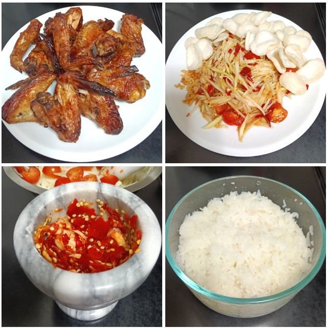เมนูวันหยุด ข้าวเหนียว ไก่ย่าง ส้มตำอกหักรักสามเศร้า #อาหารไทยในต่างแดน