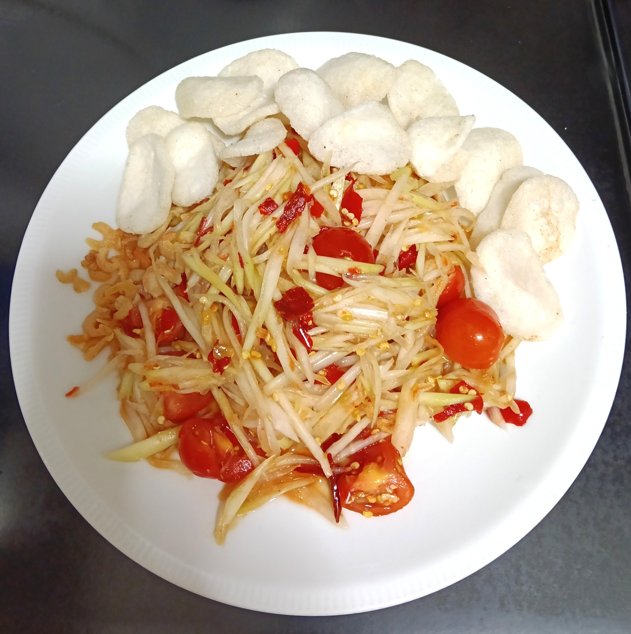 ชิมดูรสชาติ รสไหนขาดก็ปรุงเพิ่มได้ตามใจชอบเลย เสร็จแล้วก็ตักใส่จานเตรียมเสริ์ฟ โรยด้วยกุ้งแห้ง และข้าวเกรียบกุ้ง ไว้กินแก้อกหัก เอ๊ย! ไม่ใช่ ไว้กินแก้เผ็ดได้ดีมากๆเลยค่ะ 😁😋😂🌶️🌶️🌶️🌶️