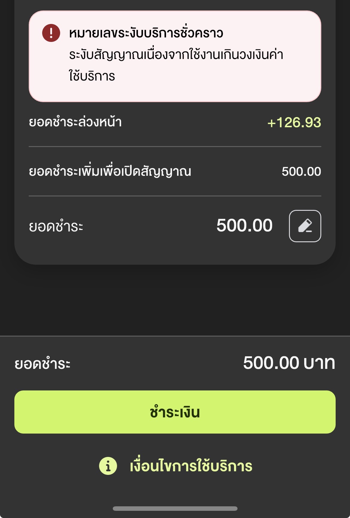 ชำระเงินเกินเพราะระบบกากๆกระจอกๆ สัญญาณก็ไม่ขึ้นให้อีก ยอดวงเงินเกืนเข้าใจได้ แต่ไม่เปิดสัญญาณให้สักทีมันก็ยังบอกให้จ่ายอีก500 จะบ้า หมดตัว1500 ไม่มีเงินกินข้าวละ ใช้มา9ปี ไม่มีไรดีขึ้นเลย 0611147945