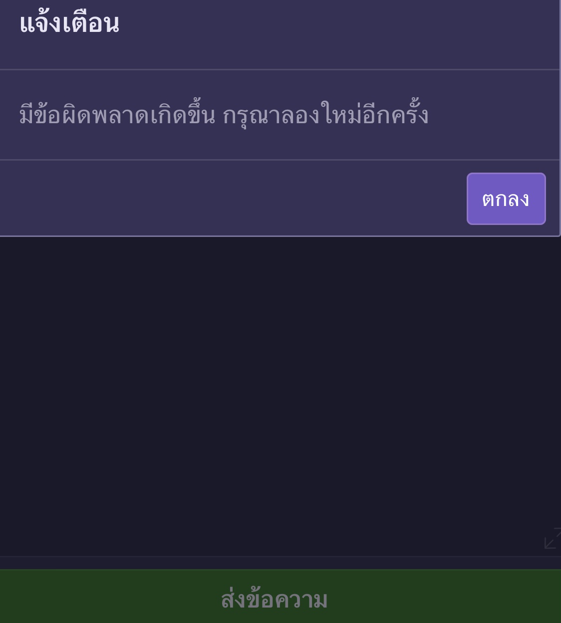 ช่วง 2 เดือนนี้ที่ผมเข้าใช้งานเมนู “ส่งข้อความ” ระบบไม่สามารถกดส่งออกได้ทันทีและจะมีข้อความโชว์ว่า”มีข้อผิดพลาดเกิดขึ้น กรุณาลองใหม่อีกครั้ง”