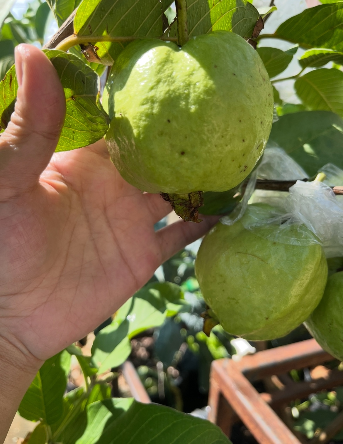 ลองปลูกฝรั่งกิมจูดู ปรากฏว่าทนมาก ขนาดน้ำท่วม น้ำขัง มันก็ยังรอด ล่าสุดไปทยอยห่อผล ห่อผิดๆ ถูกๆ มั่วๆไป ช่วงที่มันยังเล็กๆ อยู่ อีก2 เดือนผ่านไป ได้เก็บกินแล้ว ภูมิใจสุด ๆๆๆ ถามว่ารสชาติเป็นไง ถ้าแก่
