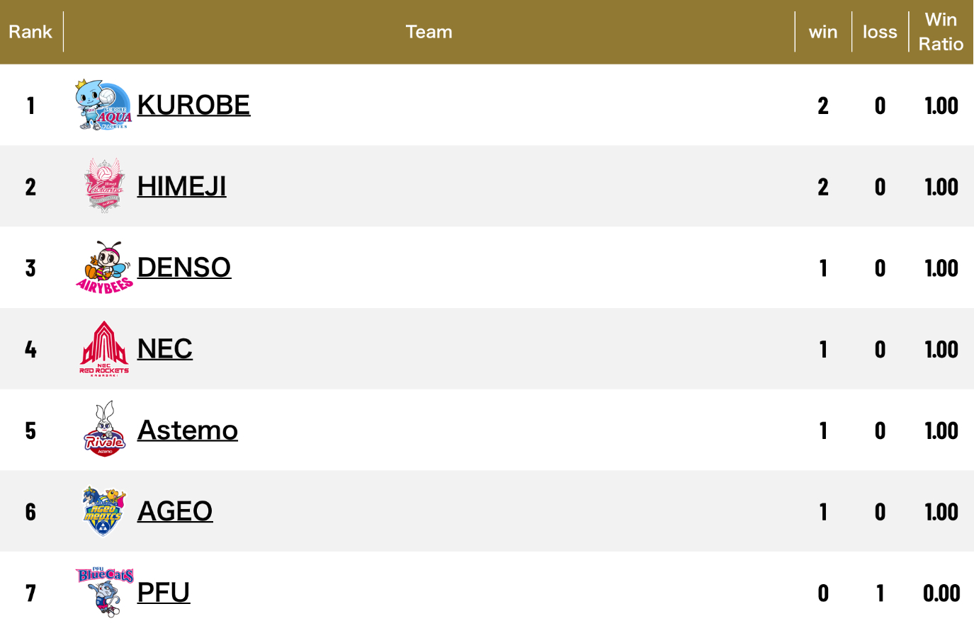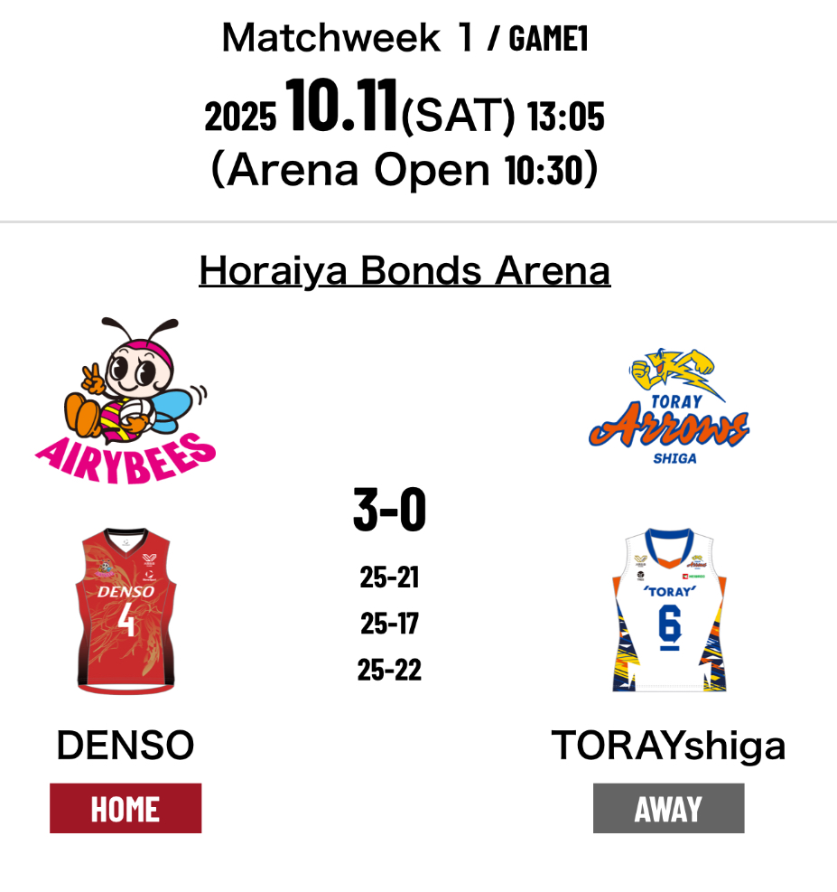 1.Denso Airybees 3-0 Toray Arrows Shiga (25-21 25-17 25-22) (75-60)