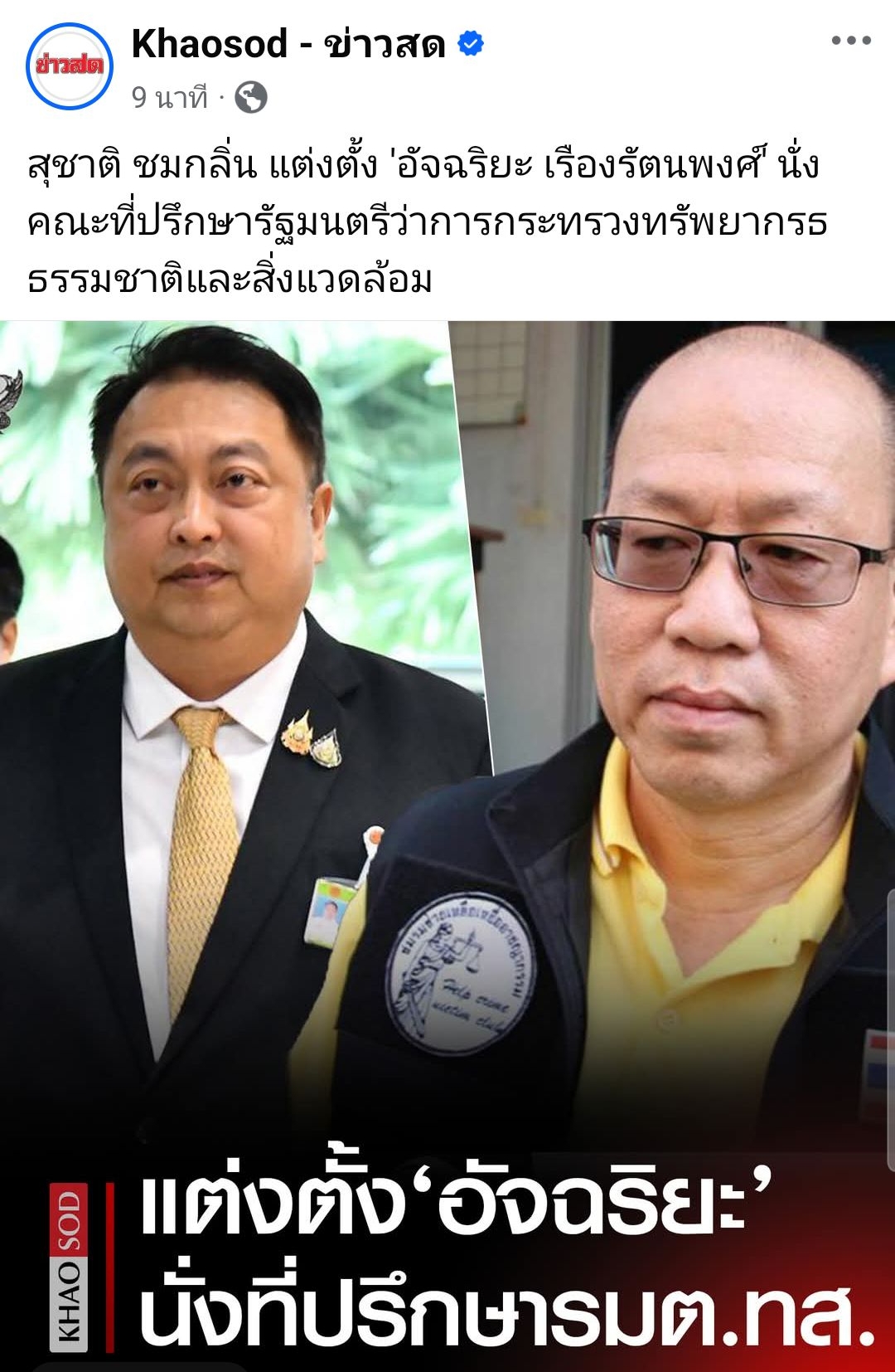 🤔 สุชาติ เซ็นแต่งตั้ง 'อัจฉริยะ' นั่งคณะที่ปรึกษารัฐมนตรีว่าการ ทส.