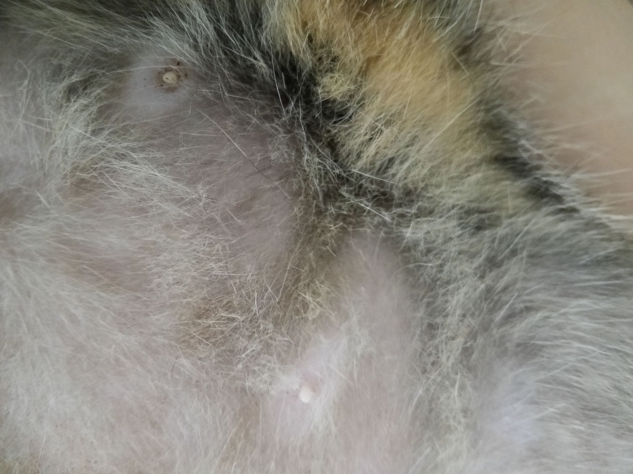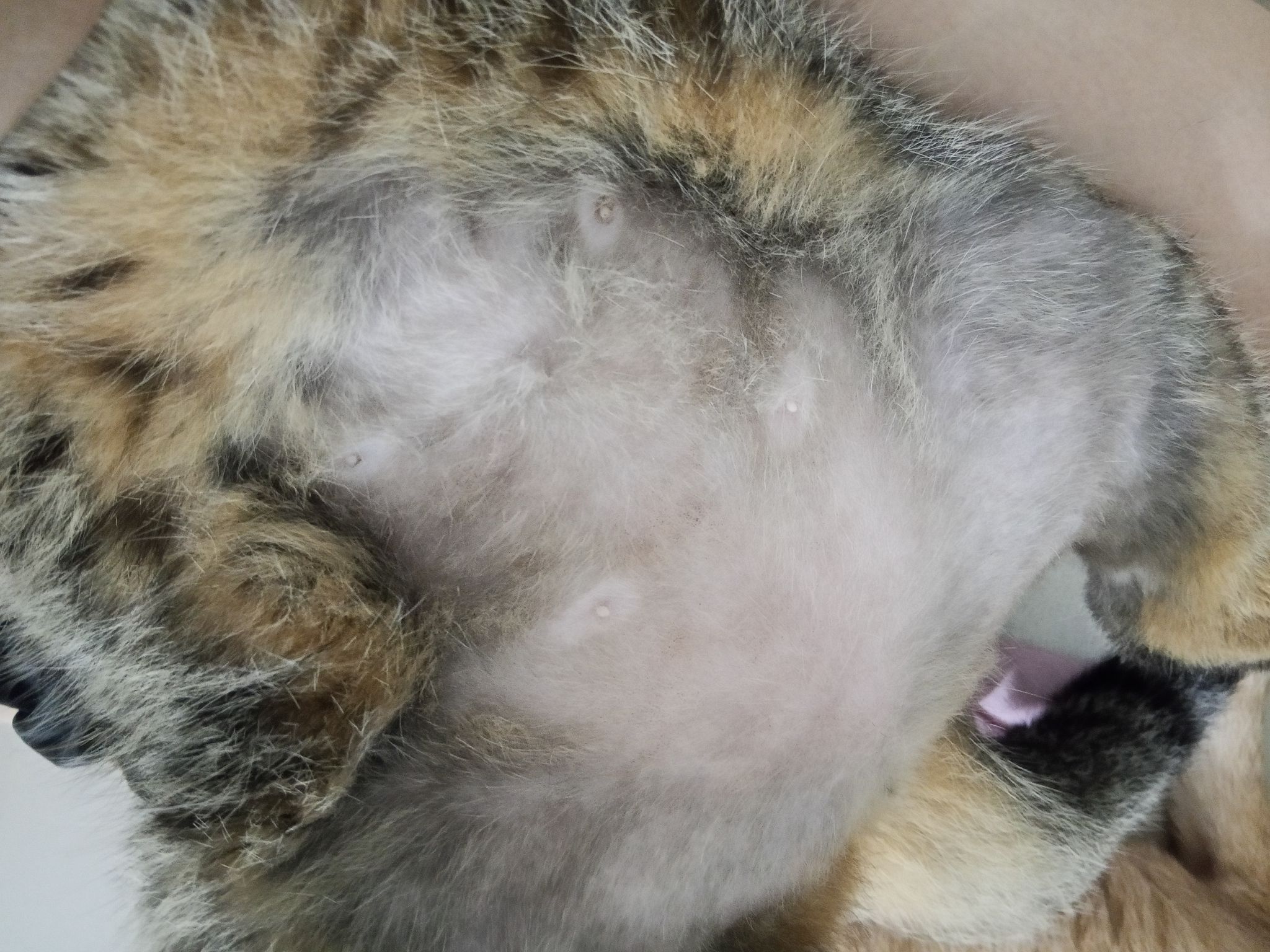 คือช่วงนี้มีแมวเราตัวหนึ่งขนร่วง ตอนแรกคิดว่าคงจะงอกยาวกลับมาได้เองแต่มันไม่ยาวกลับมาเลยค่ะ แถมมันลามแล้วตรงหลังขาข้างหนึ่งด้วย