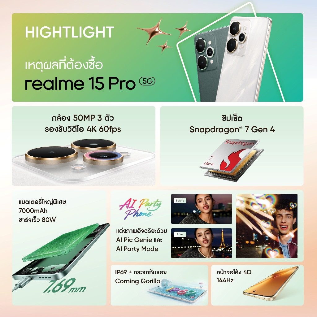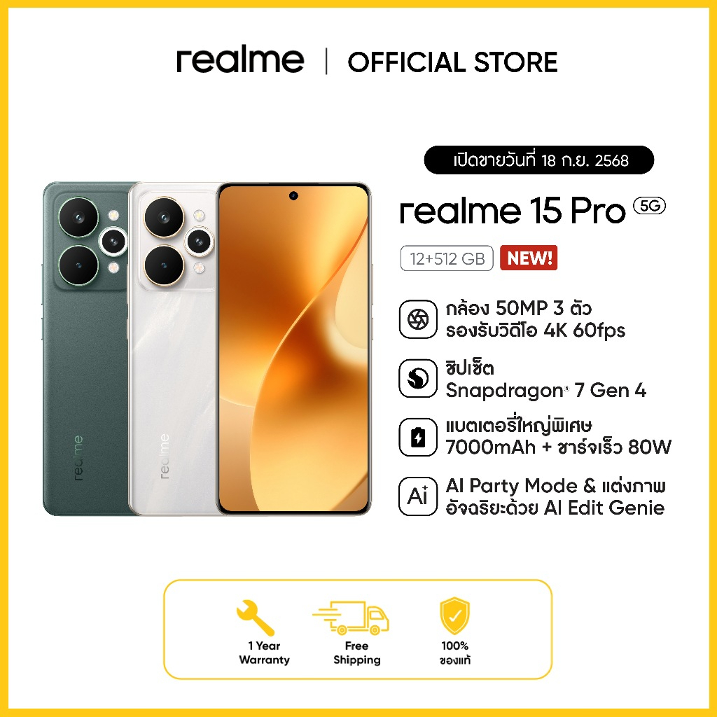 📱📷 สมาร์ทโฟนกล้องคม 50MP ชาร์จ 80W สำหรับคอนเทนต์และงานลุยทั้งวัน realme 15 Pro 5G 🔋⚡