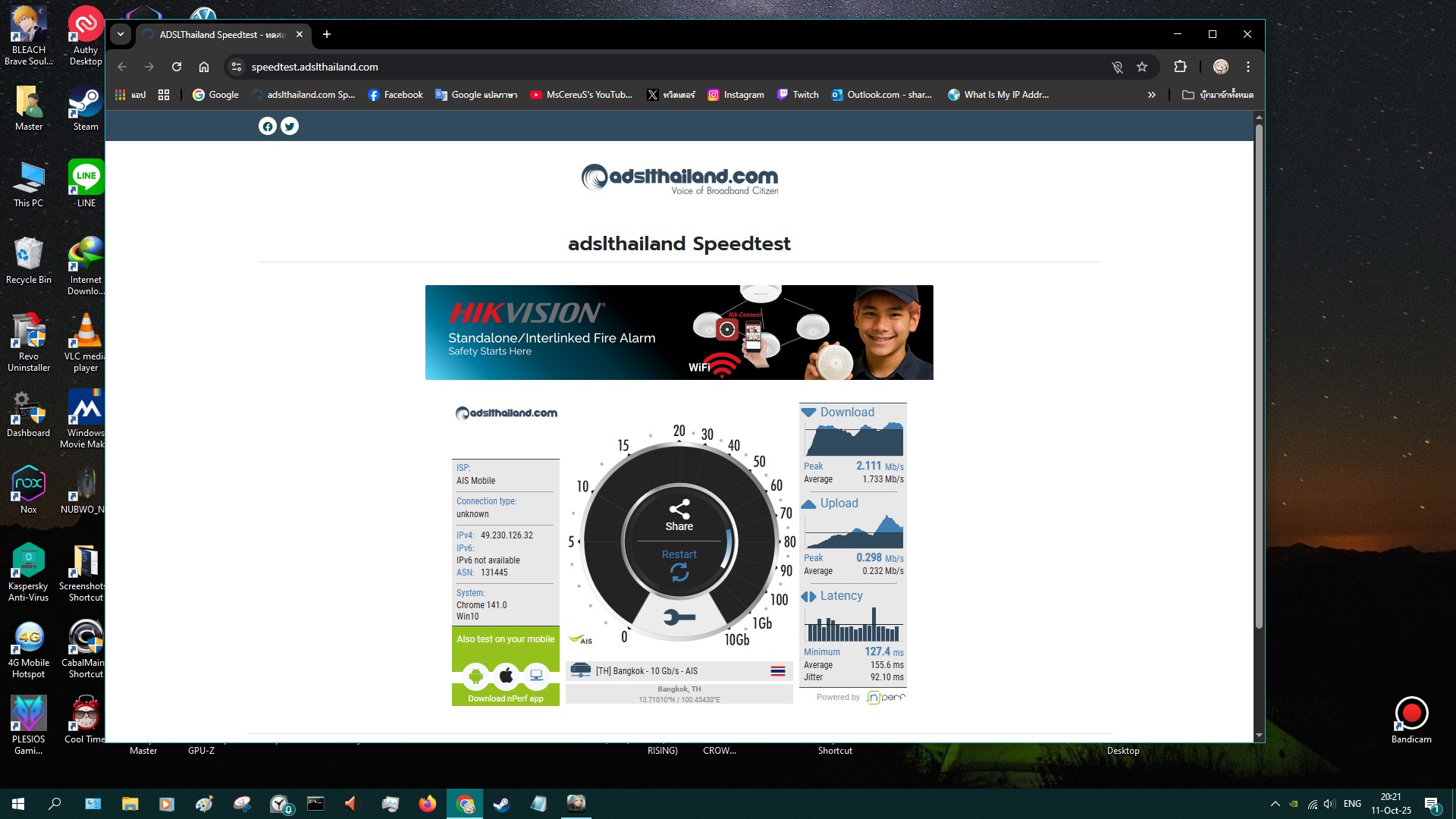 มีคลิปวิดีโอช่วงเทสสปีด ไม่ได้โหลดอะไรซ้อน เปิดแค่ Chrome กับเกม 1 เกมตามในรูป จากแพ็ค 15 Mbps