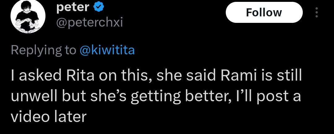 น้องแพรตอบว่า "อาการรามิยังคงไม่ค่อยดี แต่ก็ดีขึ้นมากแล้ว"