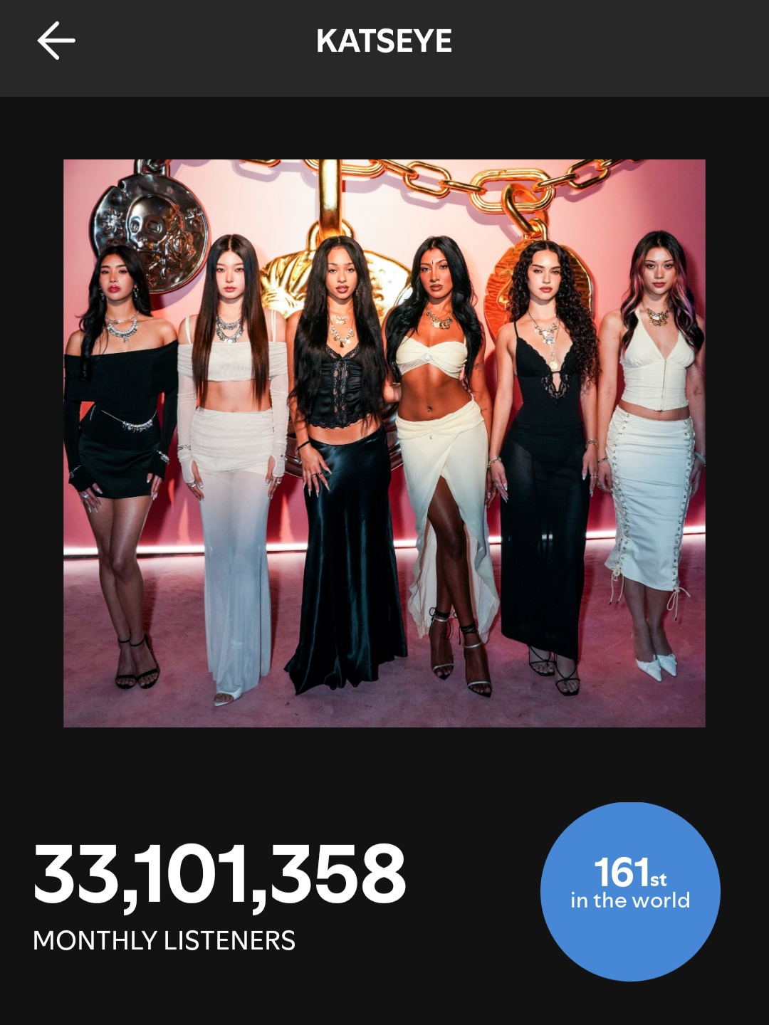 KATSEYE มียอดผู้ฟังรายเดือนบน Spotify ทะลุ 33 ล้าน 🎉 *(NEW PEAK)