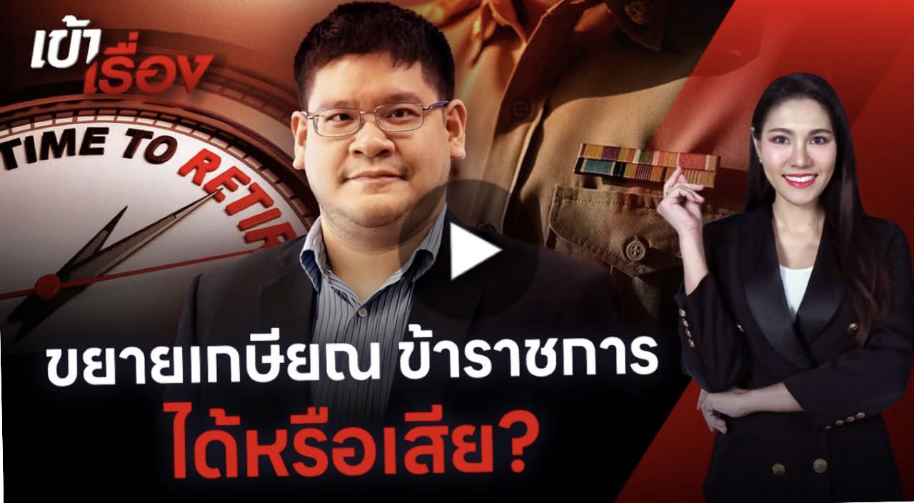 ขณะที่ไทยเข้าสู่สังคมผู้สูงวัยเต็มรูปแบบ การขยายอายุเกษียณเป็นสิ่งที่หลีกเลี่ยงไม่ได้ โดยเฉพาะในภาคเอกชนที่แรงงานจำนวนมากยังไม่มีเงินออมเพียงพอหลังเกษียณ ติดตามการวิเคราะห์ได้ใน “เข้าเรื่อง” ep.นี้