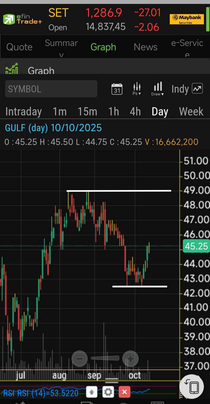 ทำ double bottom ที่ 42.5 ตามด้วยแท่งเขียวใหญ่ ลุ้นแนวต้าน 49 จะผ่านไหม