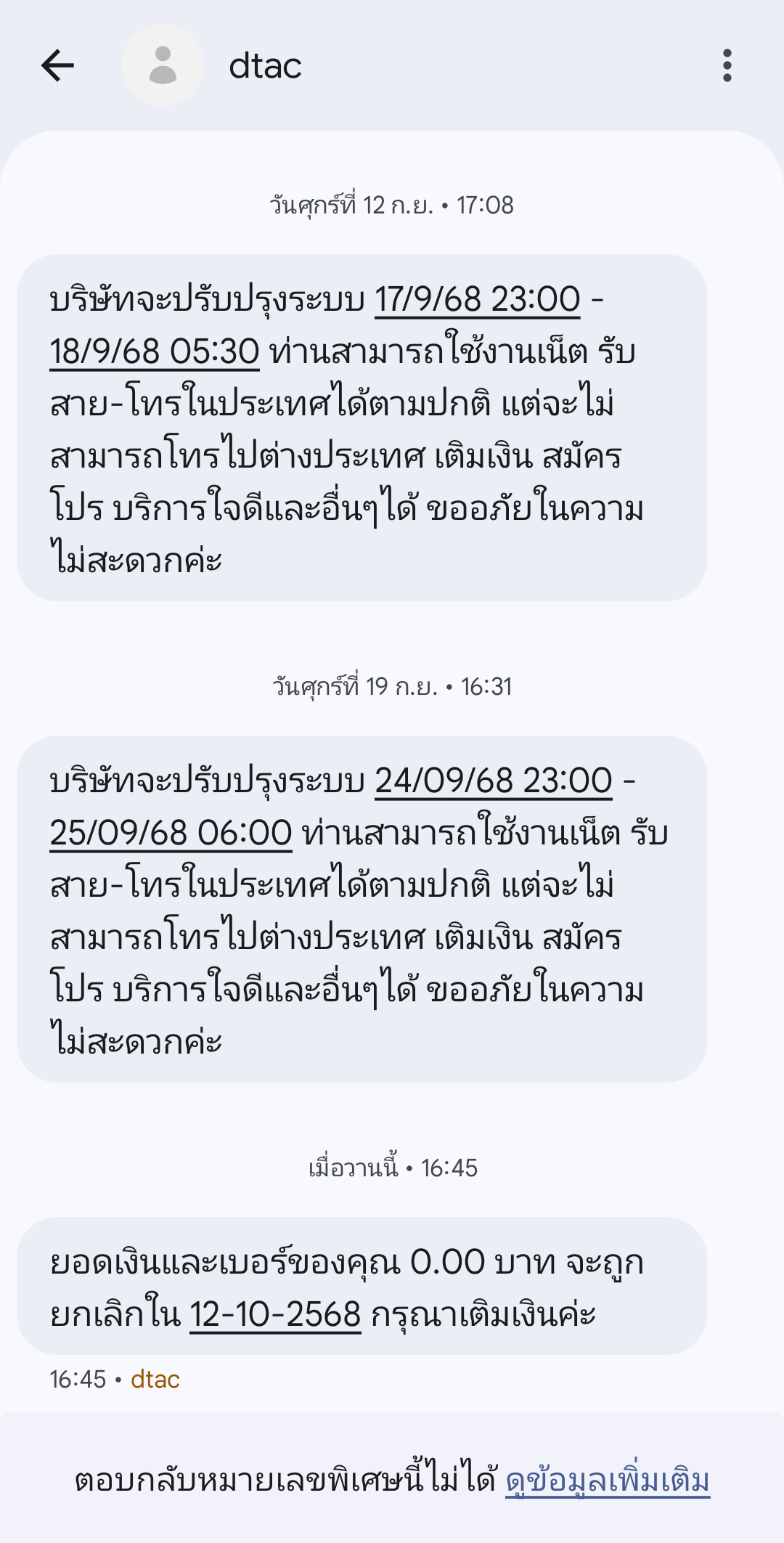 ซิมดีแทคถูกระงับเพราะไม่ได้เติมเงินหลายเดือน