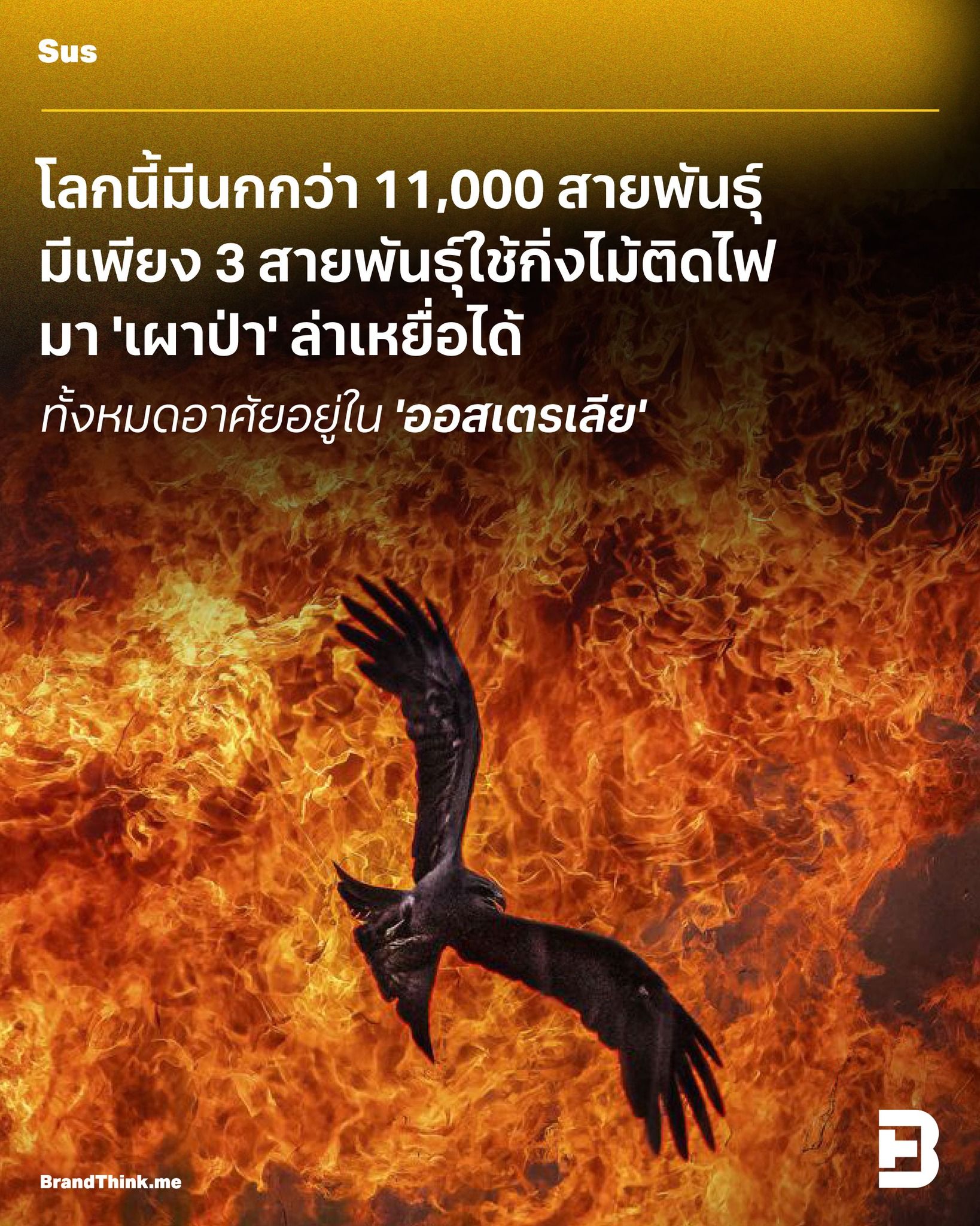 โลกนี้มีนกกว่า 11,000สายพันธุ์ มีเพียง3 สายพันธุ์ใช้กิ่งไม้ติดไฟมา 'เผาป่า' ล่าเหยื่อได้ ทั้งหมดอาศัยอยู่ใน 'ออสเตรเลีย'