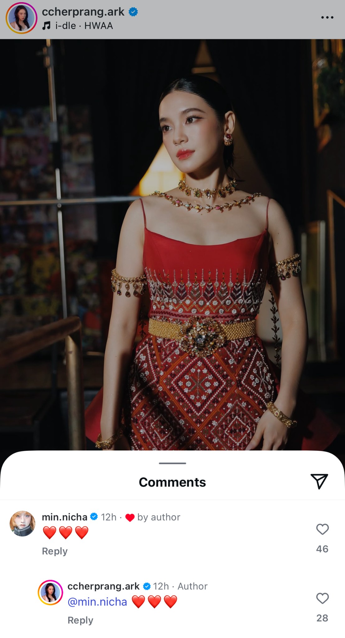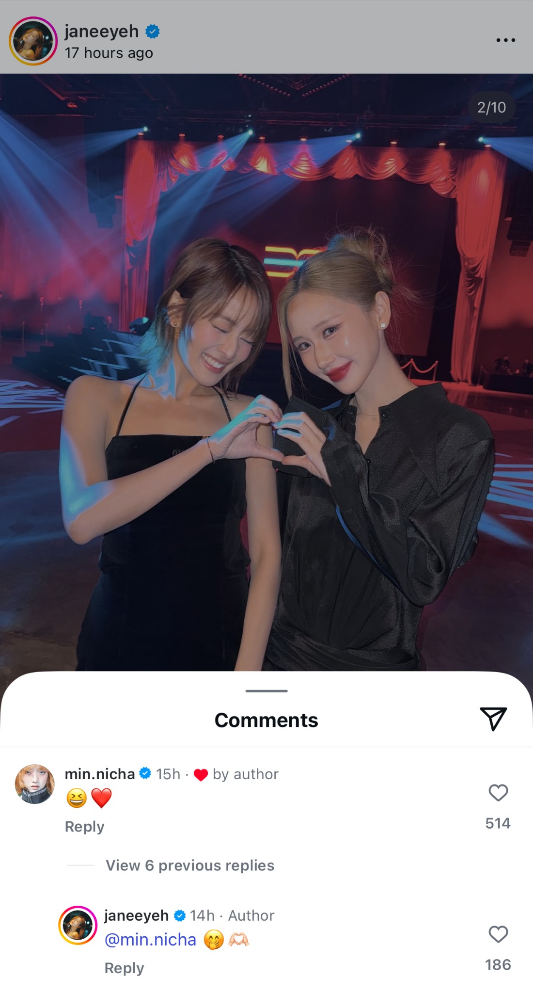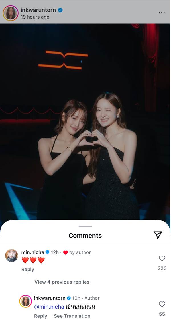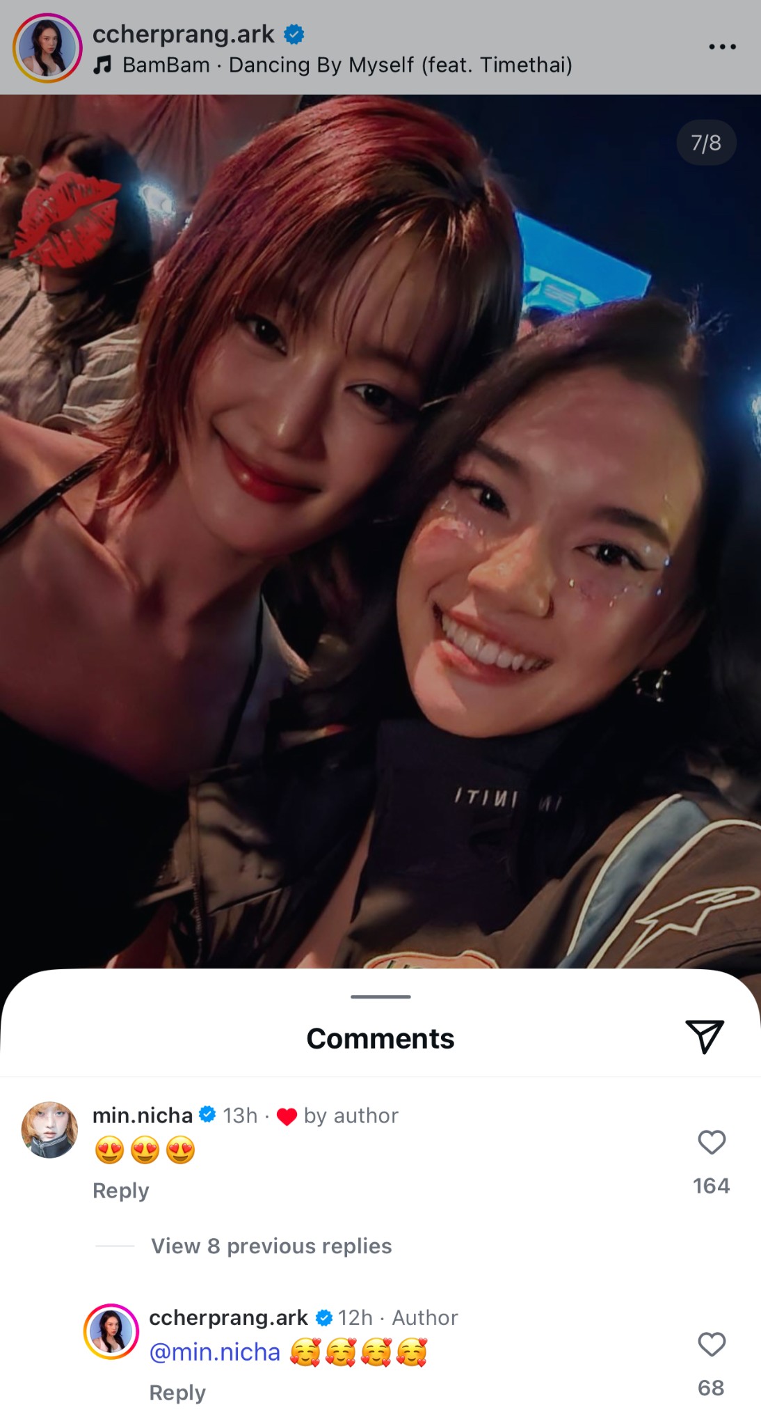 ก่อนหน้านี้ไม่กี่วันเฌอปรางเพิ่ง post ว่าได้รับบทนางวันทองในโปรเจควันทองไร้ใจ ของ LINEWEBTOON ที่มินนี่เคยร้องเพลงประกอบเป็น HWAA (เวอชั่นภาษาไทย) ซึ่งน้องเฌอใช้เพลงนี้ในโพสด้วย มินนี่ยังตามไปคอมเม้นถึงที่