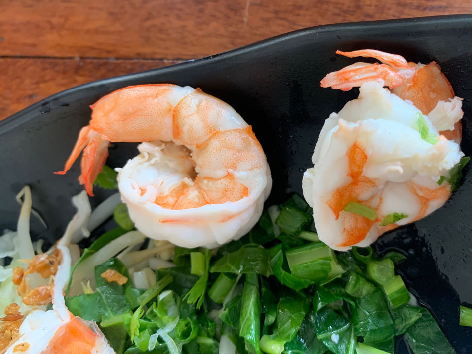ร้านอาหารจานเดียว ริมทาง จะเอาของทะเลสดๆมาขาย จะเสียชื่ออาหารชลบุรีไม่ได้นะ กุ้งสด ลวกแล้วสามารถดึงหางกุ้งออกมาเป็นยวง เนื้อหางจะต้องเต็ม ลุงอ้วนจะชอบกินกุ้งที่สดแบบนี้ ชอบกินแบบนี้ตั้งแต่เด็กน้อยจำความได้