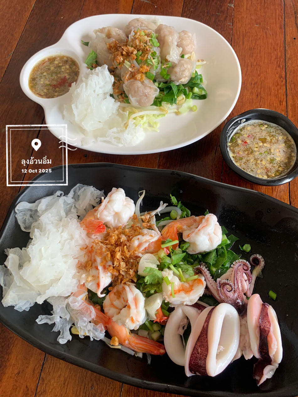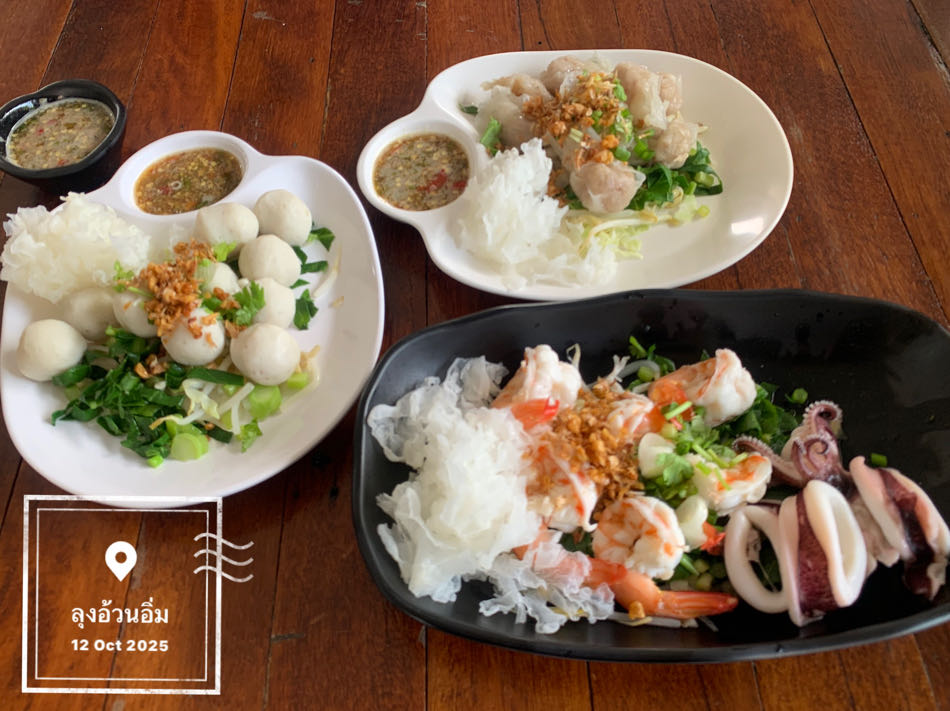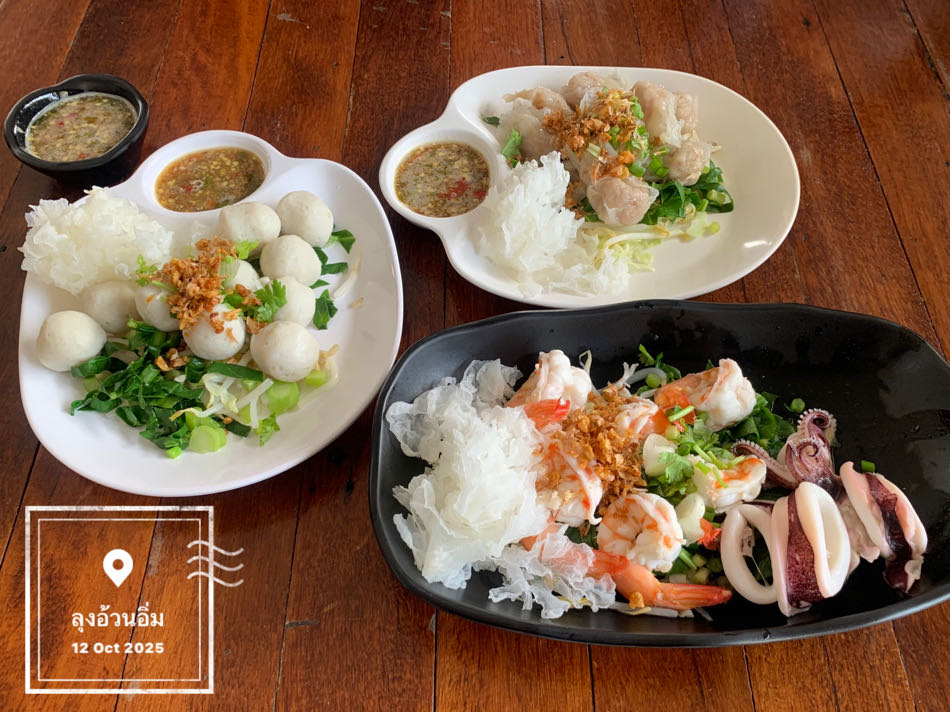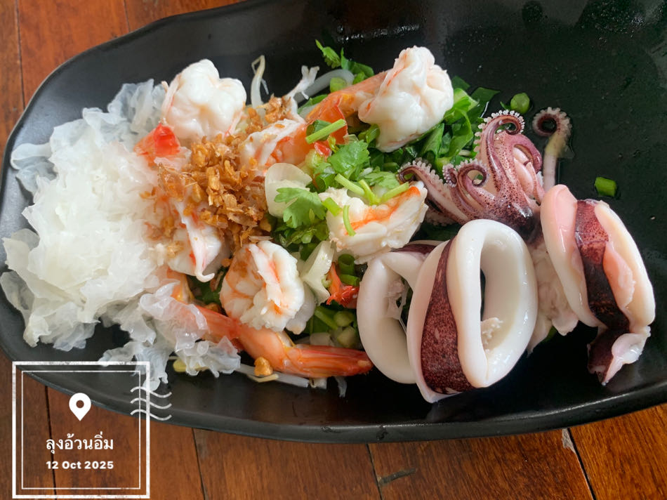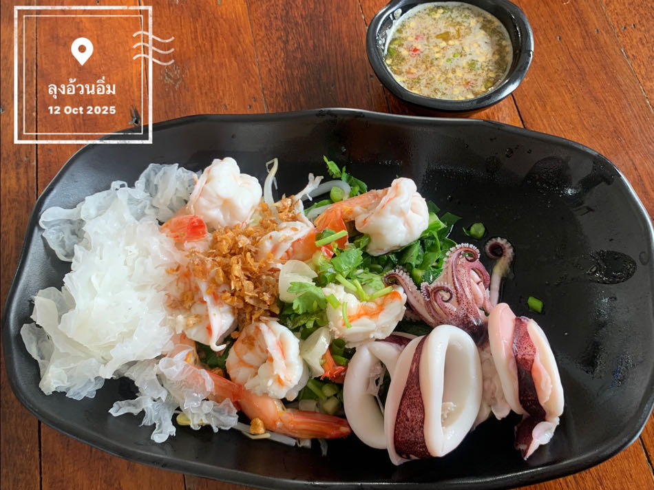 - อาหาร (กุ้งหมึกลวกจิ้ม) : 120 บาท