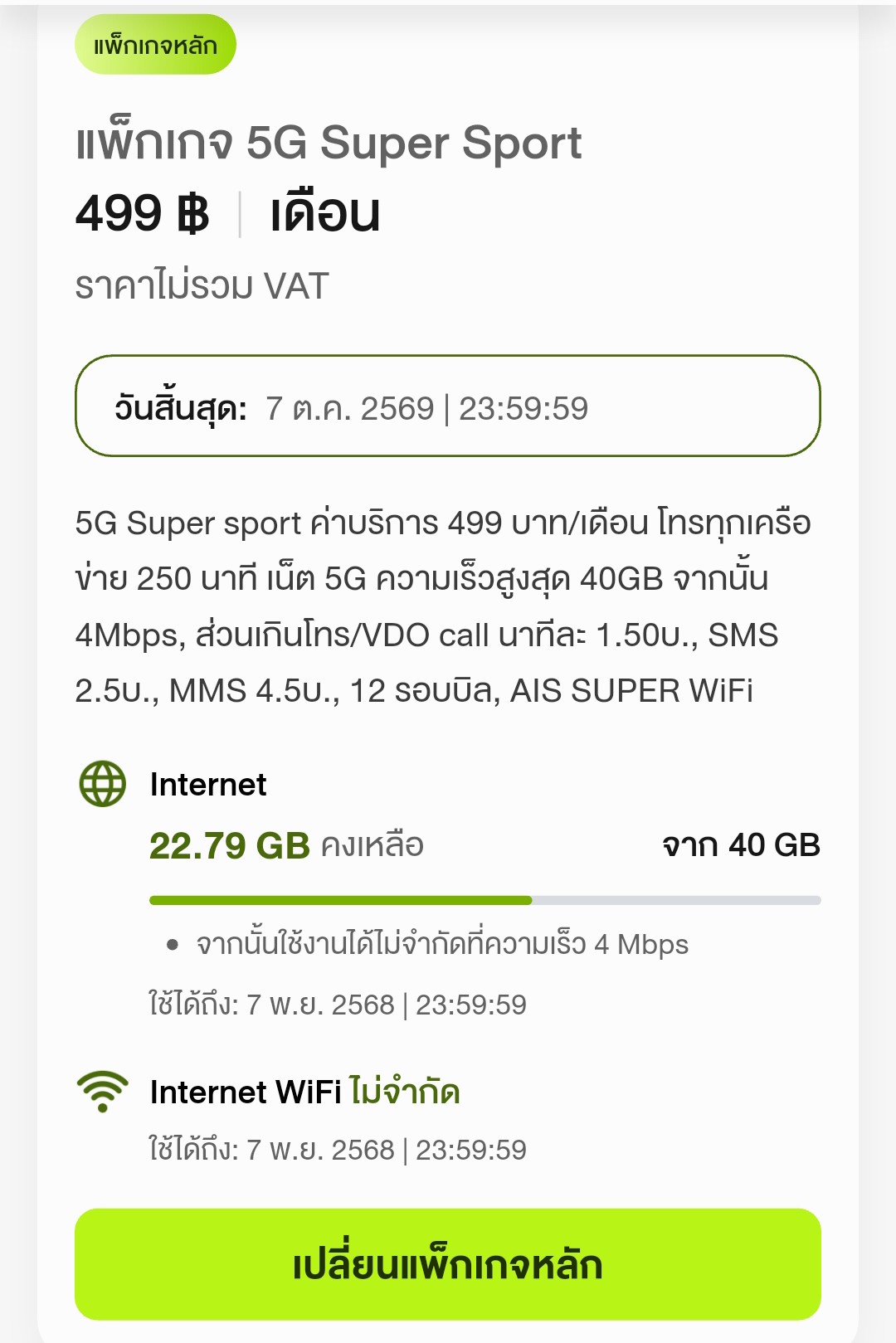 อยากลองย้ายไปค่ายอื่น เพราะรู้สึกว่าแพ็คเกจเน็ต499+ 5G ความเร็วสูงสุด40GB หลังจากนั้น4Mbps โทรทุกเครือข่าย250นาที ส่วนตัวก็ใช้เล่นเน็ตแค่อย่างเดียวไม่ได้โทรเลยด้วย หรือว่าใครมีโปรไหนคุ้มๆน่าสนใจของค่า