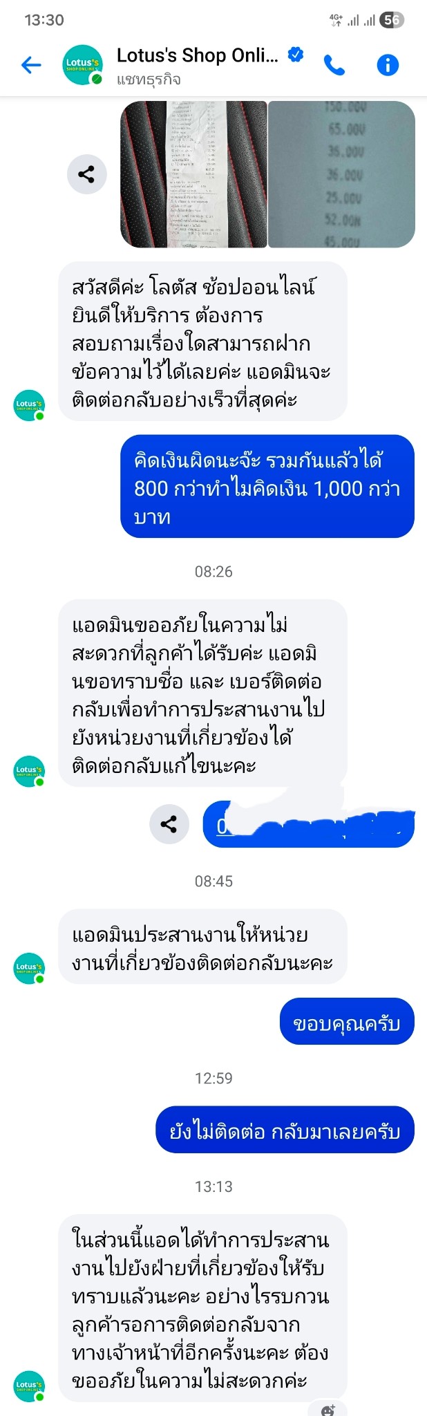 เมื่อวานซื้อของโลตัส กลับบ้านมาตรวจใบเสร็จ โดนคิดค่าสินค้า บวกเกินจริง