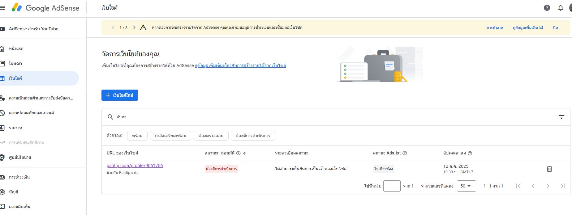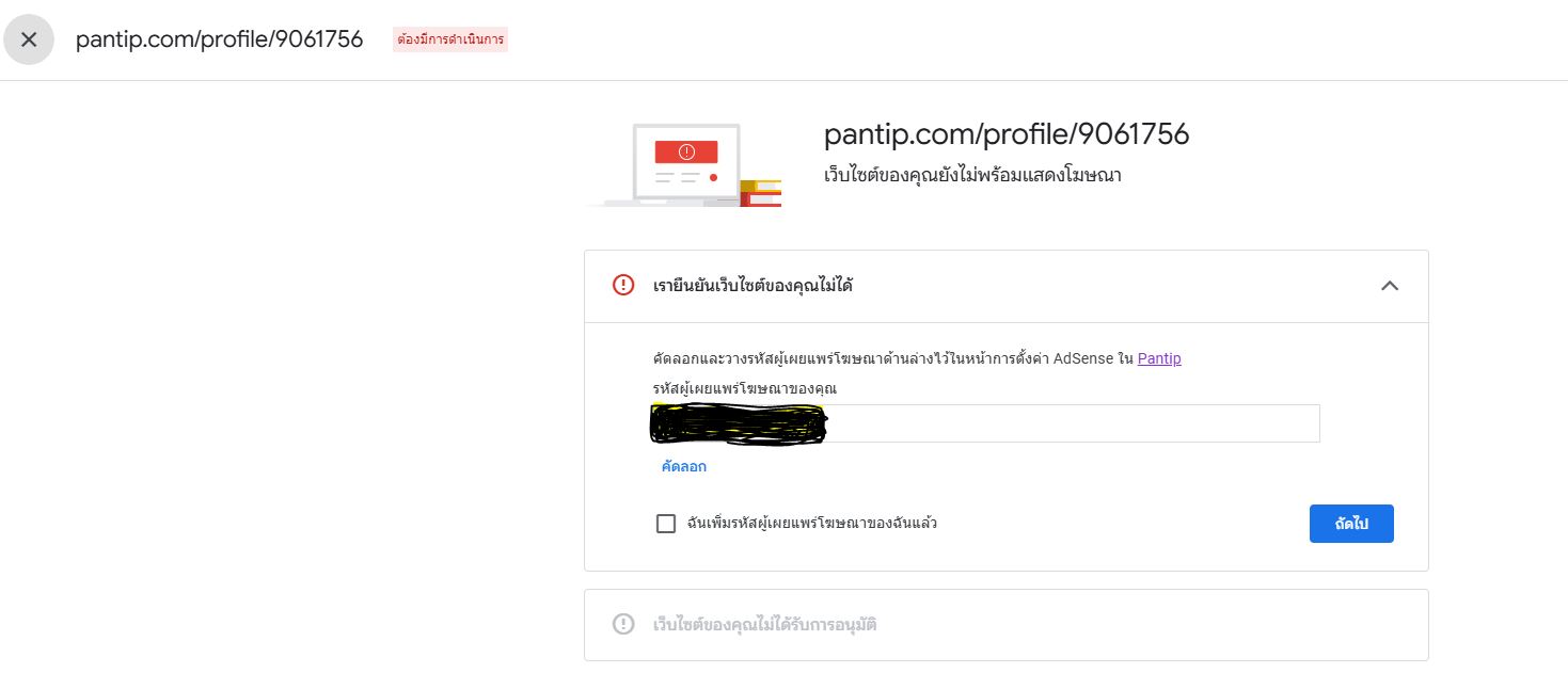 อัพเดท Google Adsense ของ Pantip เชื่อมต่อไม่ได้