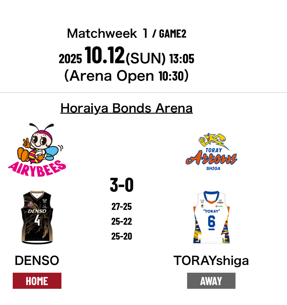 2.Denso Airybees 3-0 Toray Arrows Shiga (27-25 25-22 25-20) (77-67)