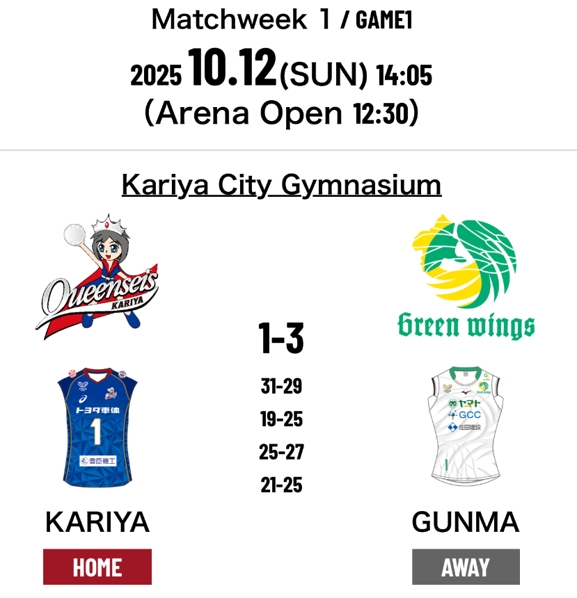 5.Queenseis Kariya 1-3 Gunma Bank Green Wings (31-29 19-25 25-27 21-25) (96-106)