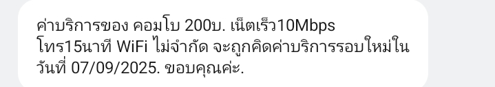 สอบถามครับแพกนี้แบบแค่เดือนเดียวหรือต่ออัตโนมัติครับได้ครับ แพ็คเสริม 225บ. 5G 5GB และเน็ต 10Mbps 115GB WiFi 305u 210.28 B เดือน ราคารวม VAT 225 B อินเทอร์เน็ต 5G 5 GB ความเร็ว: เน็ต 5G เต็มสปีด